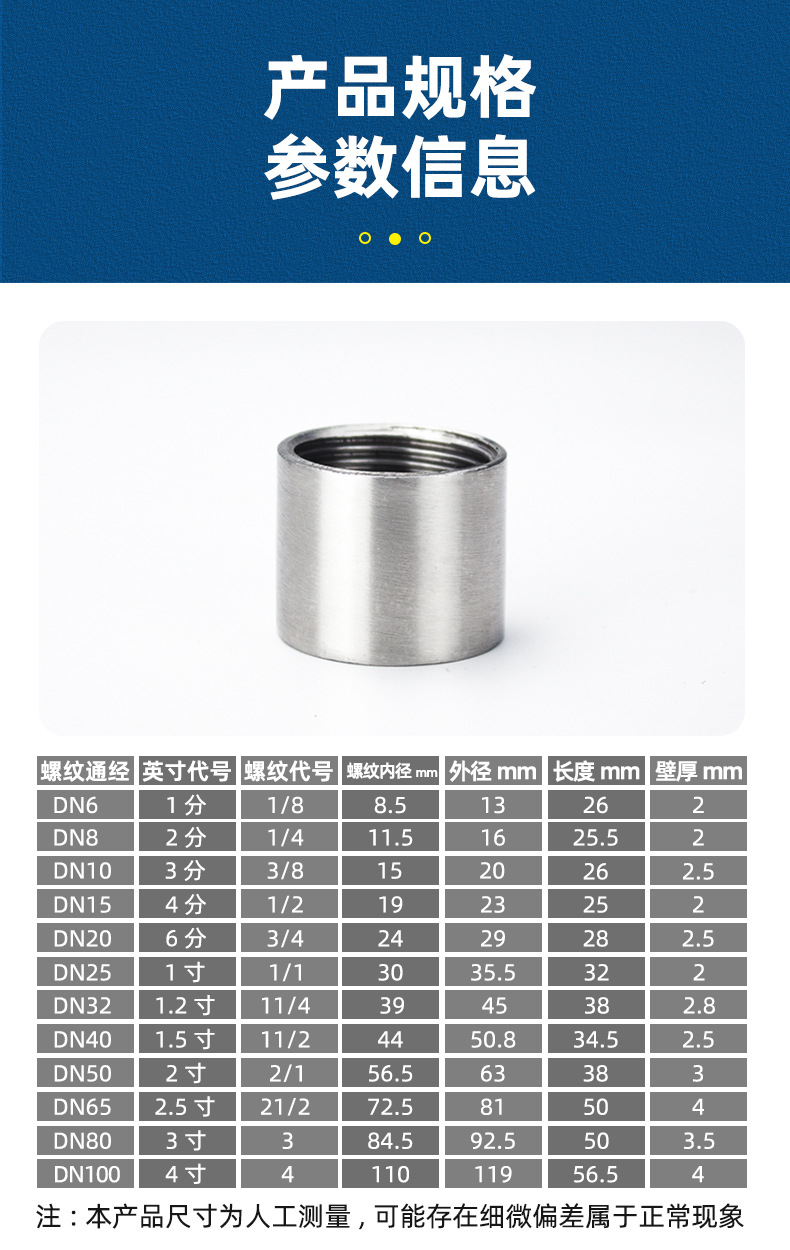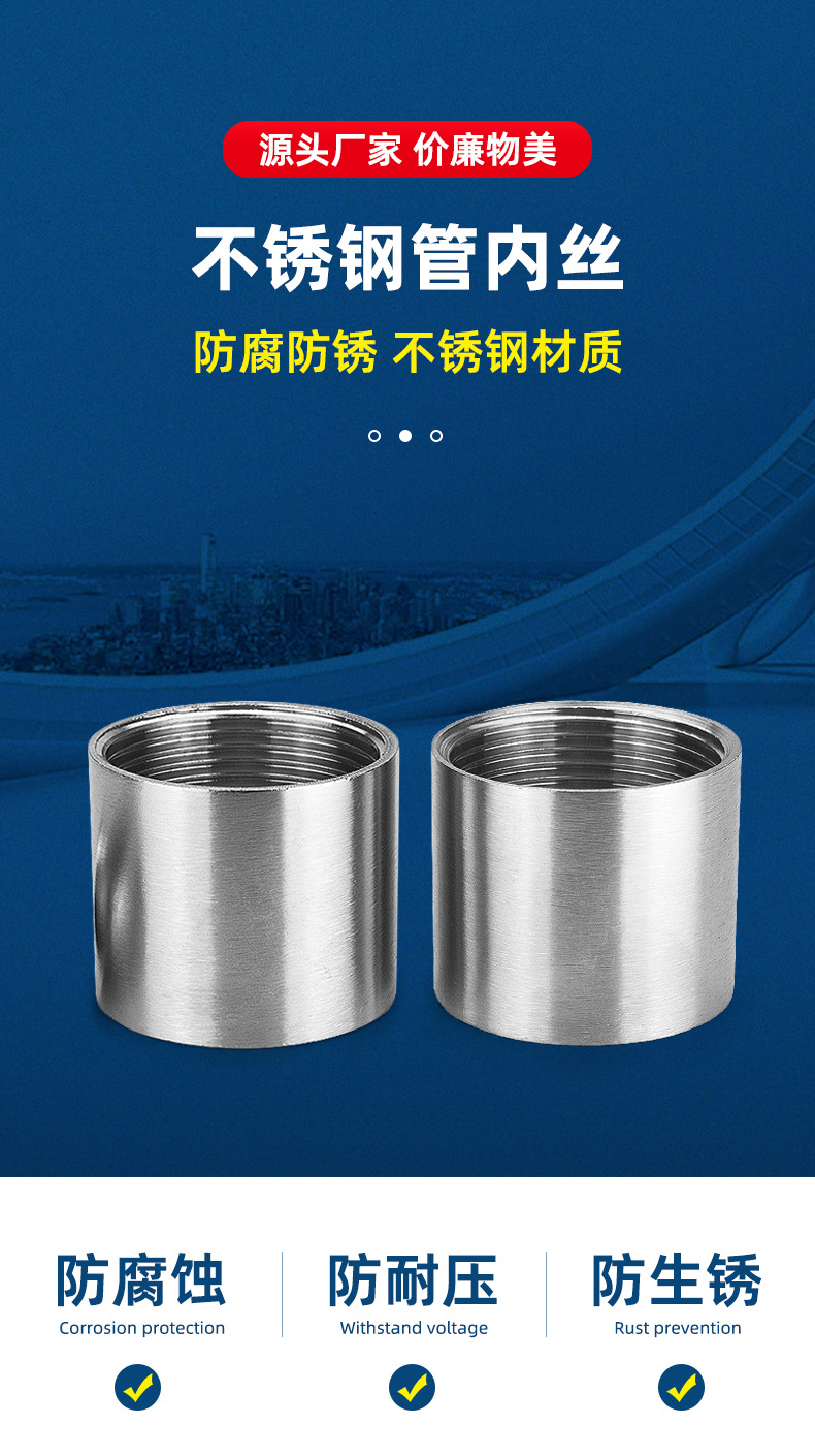 M & 304 스테인레스 스틸 파이프 이중 내부 와이어 조인트 내부 치아 원형 파이프 직접 내부 실 316L 수도관 4 점 6 점 1스토어 가기