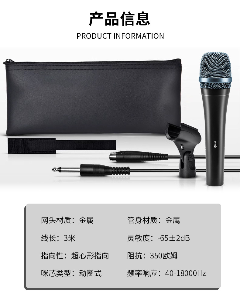 국경 도매 E945 유선 마이크 엔핑 동적 코일 최적화 보컬 성능 회의 마이크