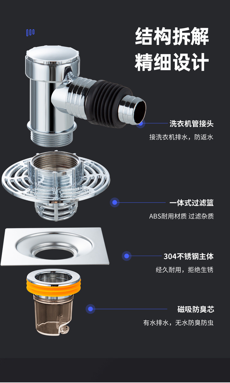 Shengbangrong 바닥 배수 세탁기 커넥터는 화장실 배수 1 점 탈취 오버플로에 연결된 2 개의 하수관 3 개의 끝을 우회합니다.스토어 가기
