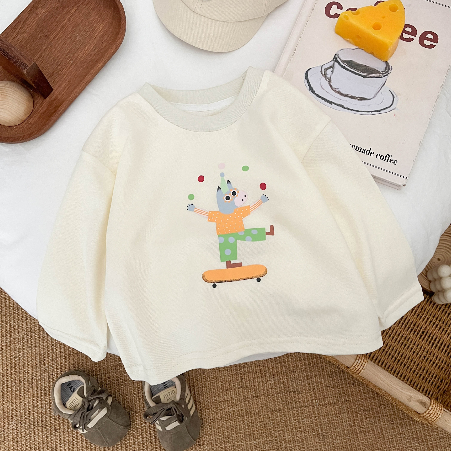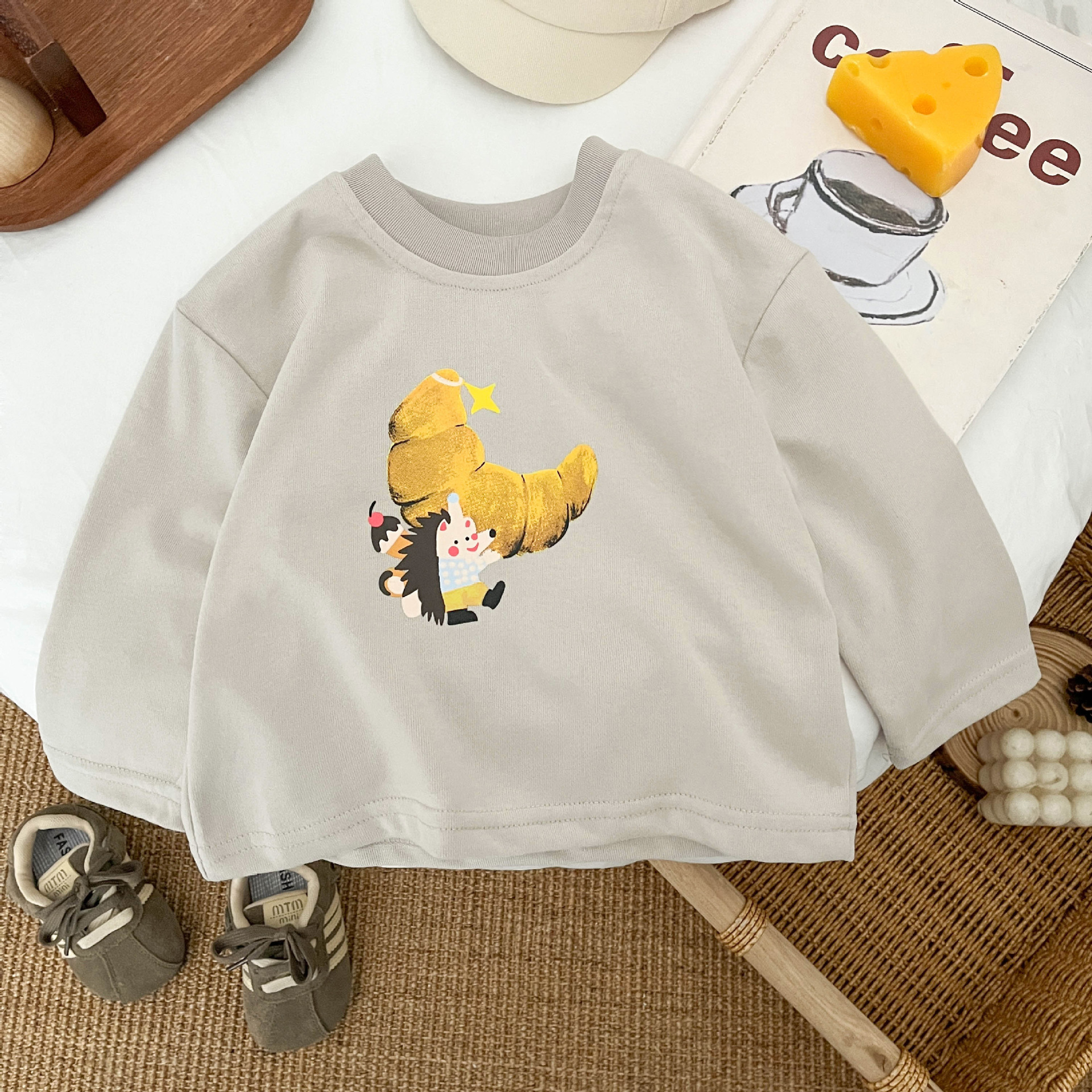 Ins Boys 긴팔 티셔츠 새로운 어린이 올매치 베이스 셔츠 봄 아기의 캐주얼 내부 만화 인쇄 탑스토어 가기
