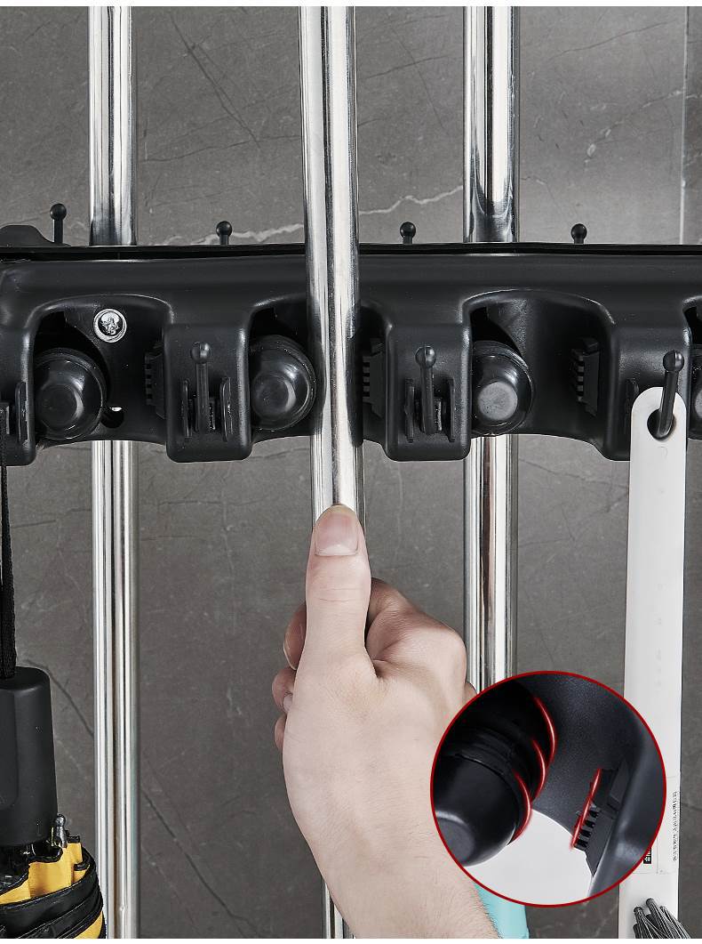 이동식 바닥 교수형 빗자루 보관 랙 스테인레스 스틸 상업용 걸레 랙 청소 도구 걸레 랙