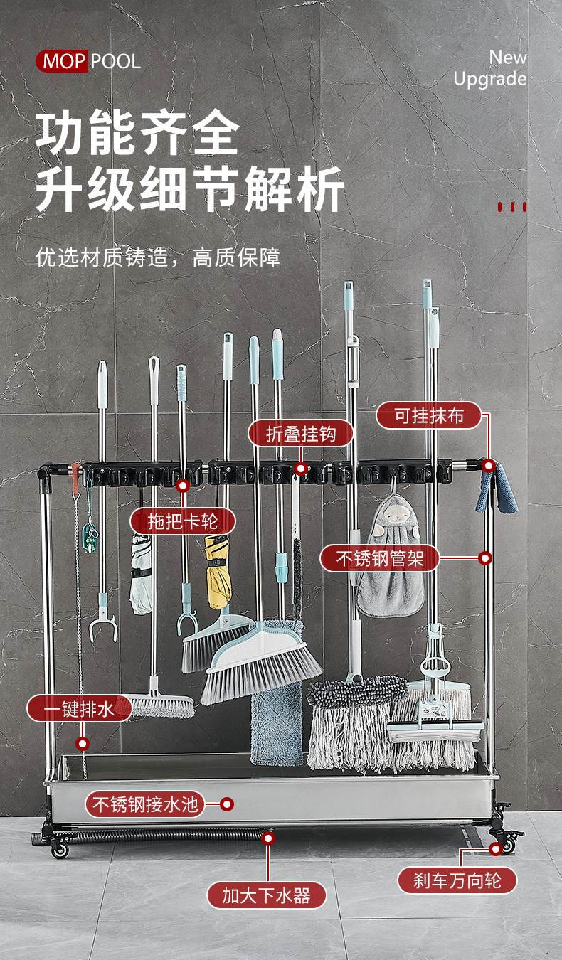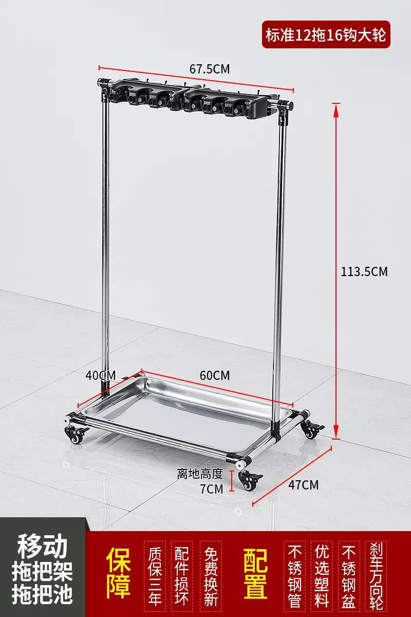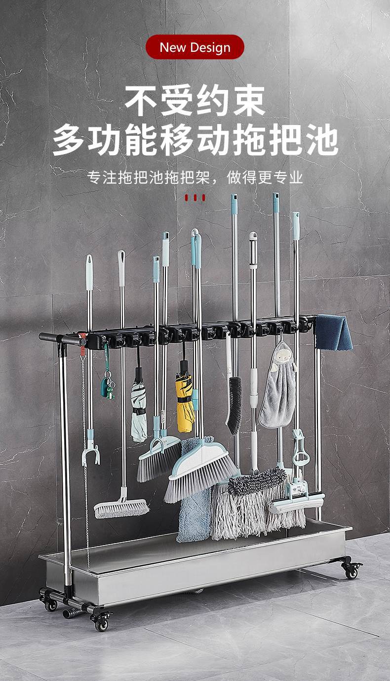 이동식 바닥 교수형 빗자루 보관 랙 스테인레스 스틸 상업용 걸레 랙 청소 도구 걸레 랙스토어 가기