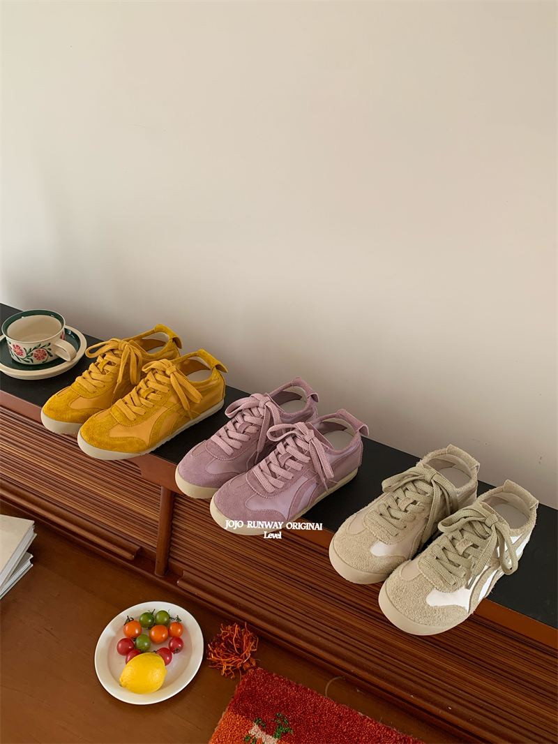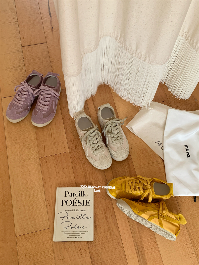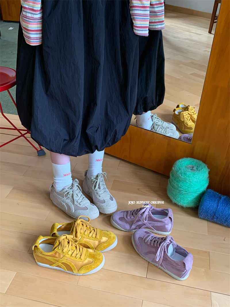 포레스트 검프 트레이닝 신발 여성 2025 봄 새로운 정품 가죽 실크 패션 플랫 컬러 매칭 러닝 슈즈 스포츠 캐주얼 트렌디 슈즈