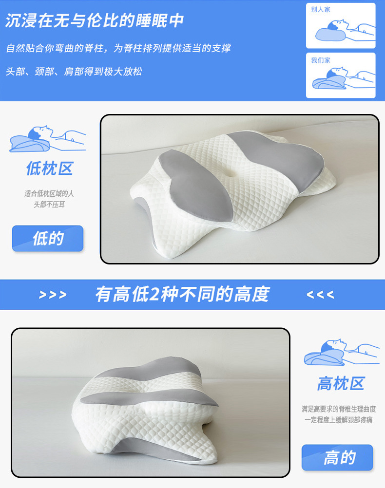 국경 간 메모리 폼 베개 아마존 성인 나비 모양의 목 베개 수면 높은 베개 비 붕괴 느린 리바운드 메모리 베개