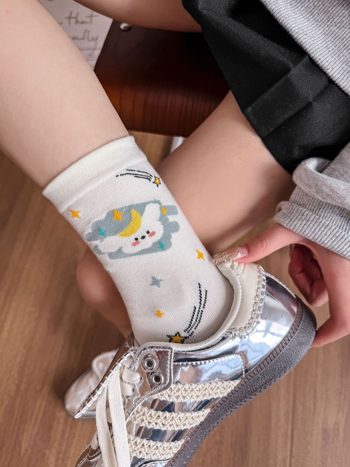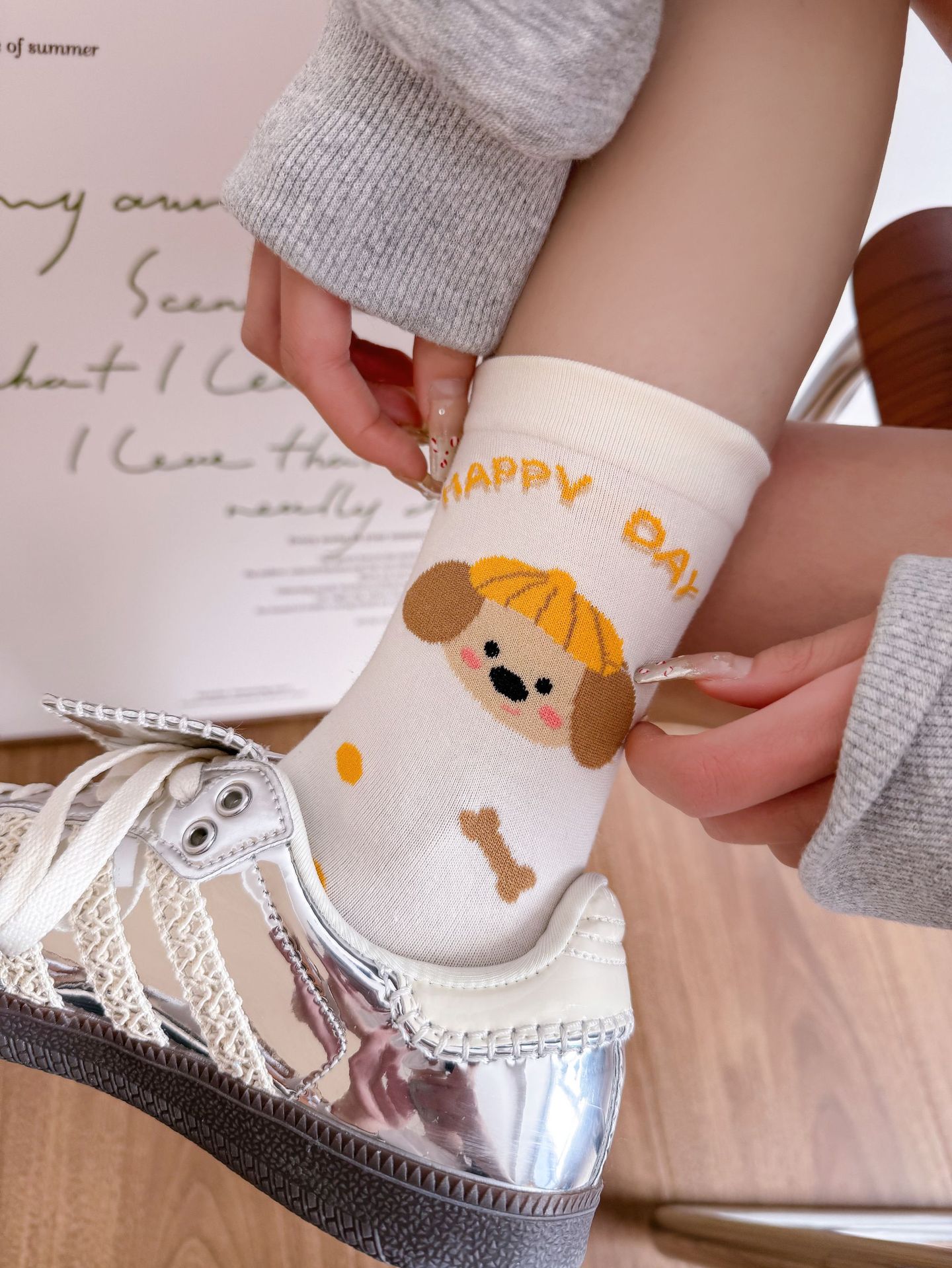 새로운 귀여운 양말 어린이 양말 면화 봄과 가을 일본 만화 학생 강아지 여름 얇은 흰색 스타킹