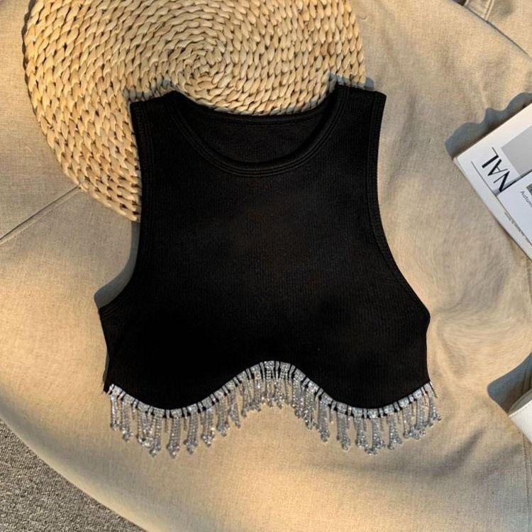 25 여름 새 소녀 Sequins 공연 의류 Tassel Vest Sling 여성용 달콤하고 뜨거운 댄스 노출 쇼트 탑 트렌디스토어 가기