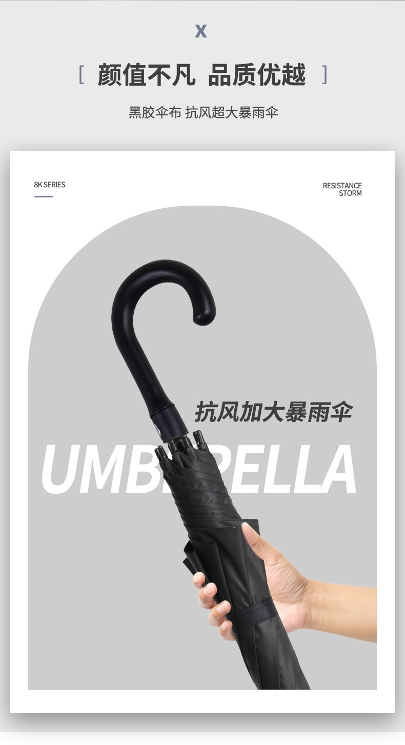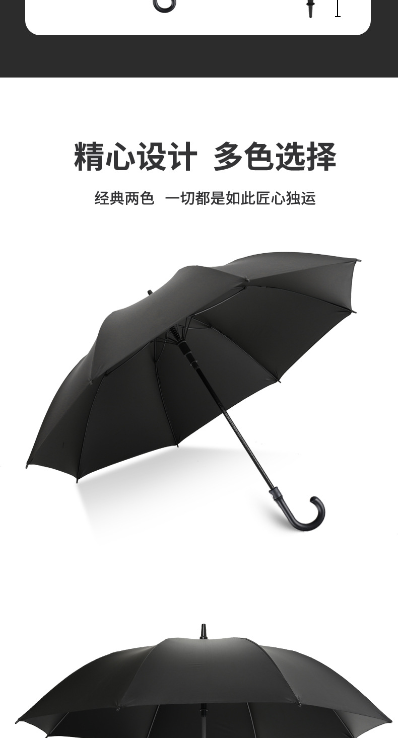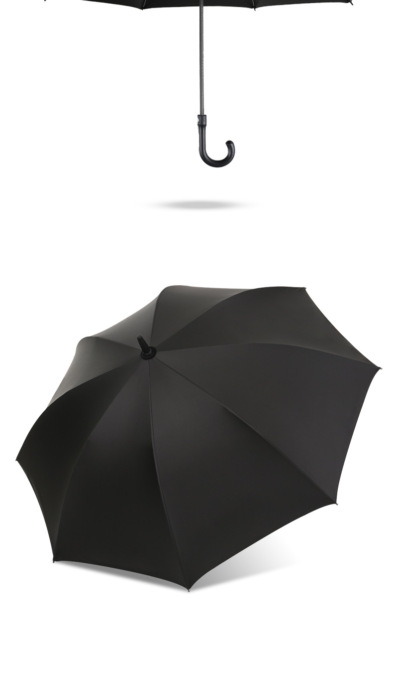 • 초대형 150cm 곡선 손잡이 검정색 플라스틱 우산 - 검정색