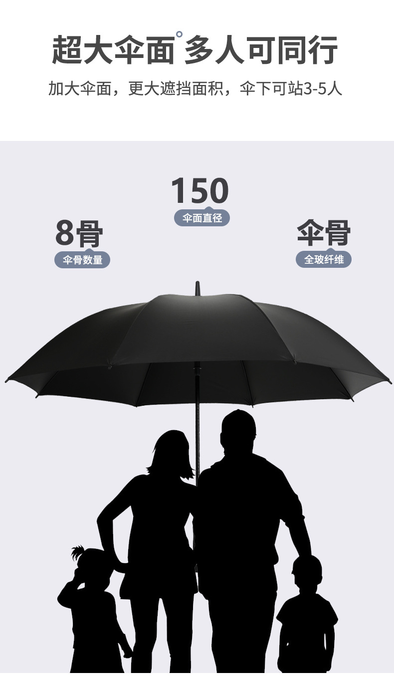 150cm 대형 3-5 인 긴 손잡이 우산 전체 유리 섬유 비닐 확대 방풍 직선 손잡이 상업 우산 광고 우산스토어 가기