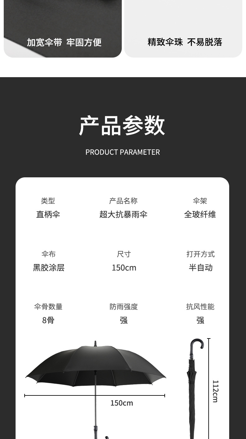 150cm 대형 3-5 인 긴 손잡이 우산 전체 유리 섬유 비닐 확대 방풍 직선 손잡이 상업 우산 광고 우산