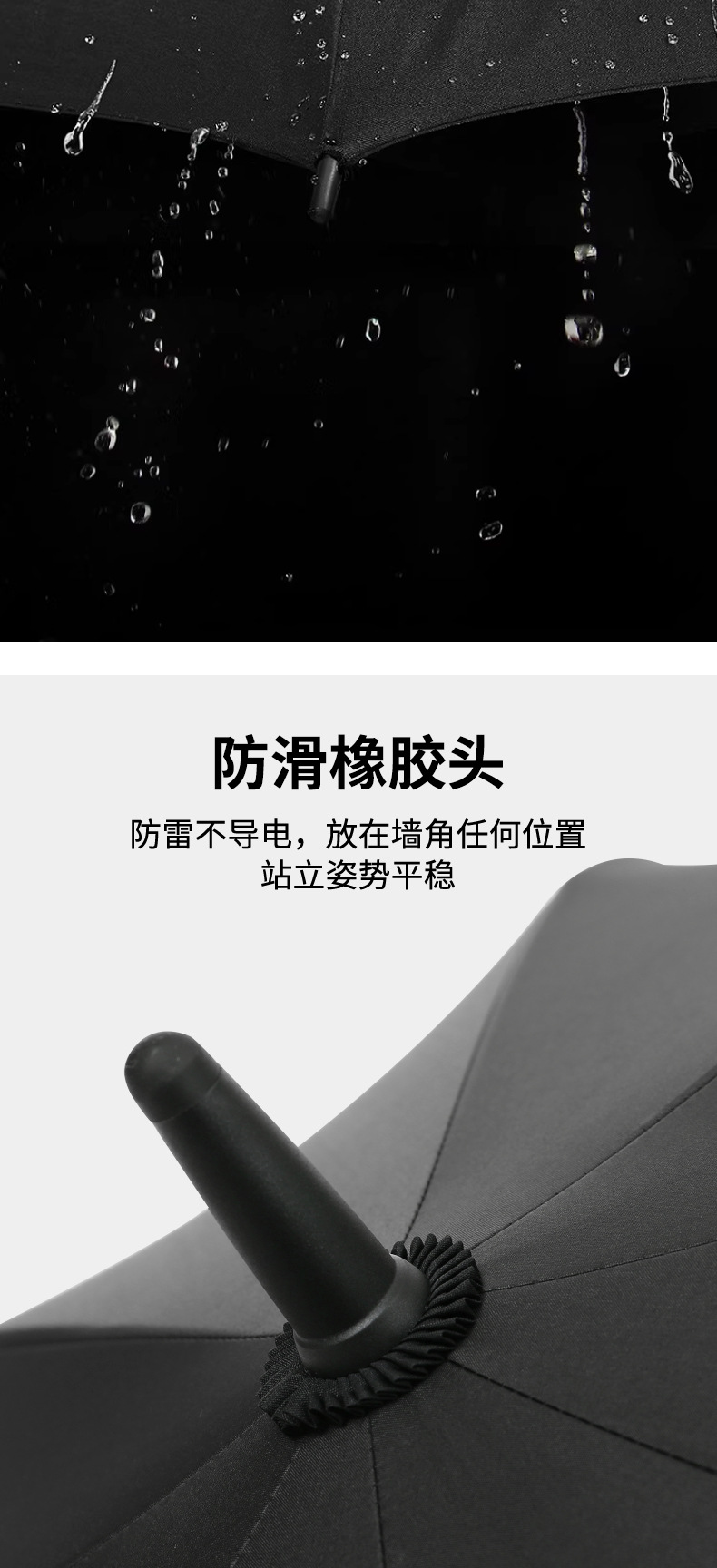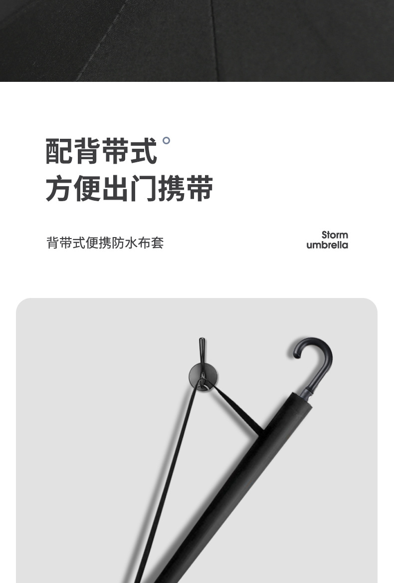 • 특대형 150cm 직선 손잡이 검정색 플라스틱 우산 - 검정색