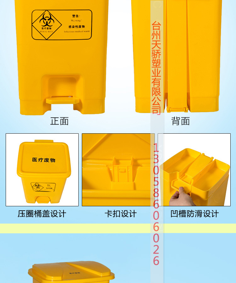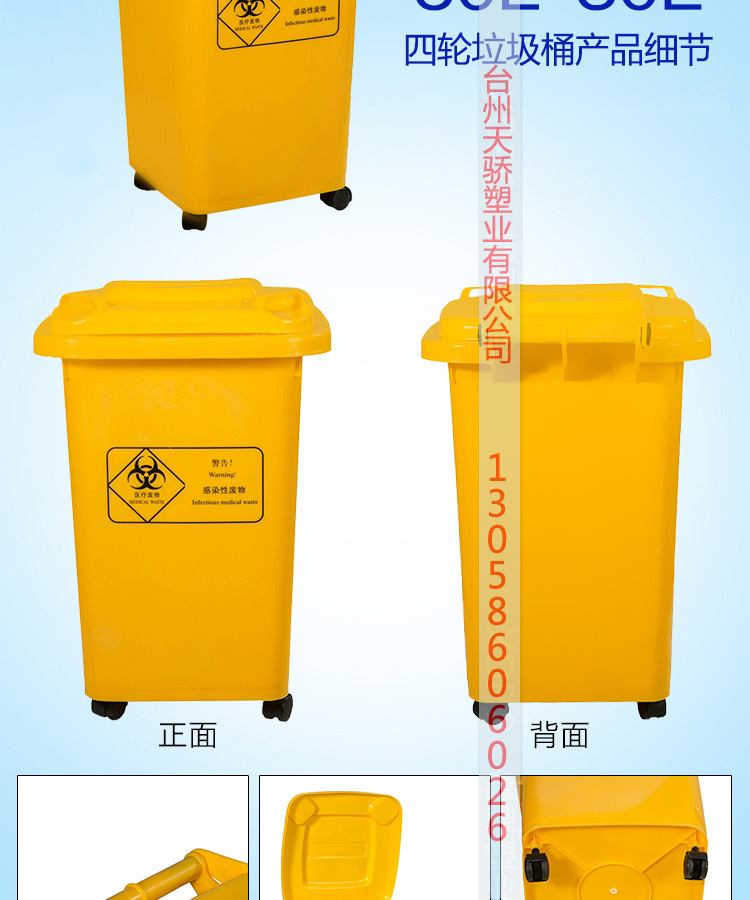 야외 위생 플라스틱 휴지통 위생 버킷 휴지통 바퀴 달린 뚜껑 의료용 날카로운 폐기물 저장 상자