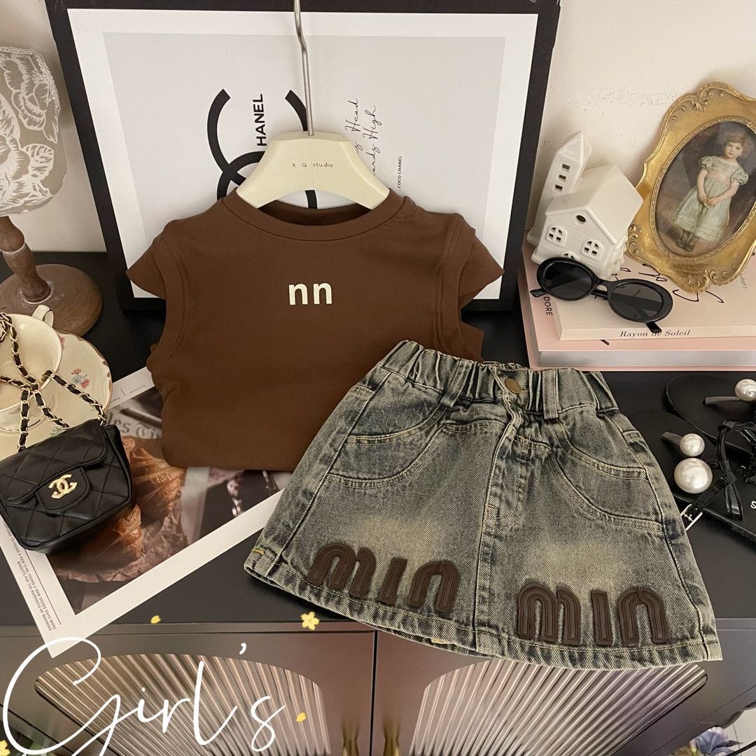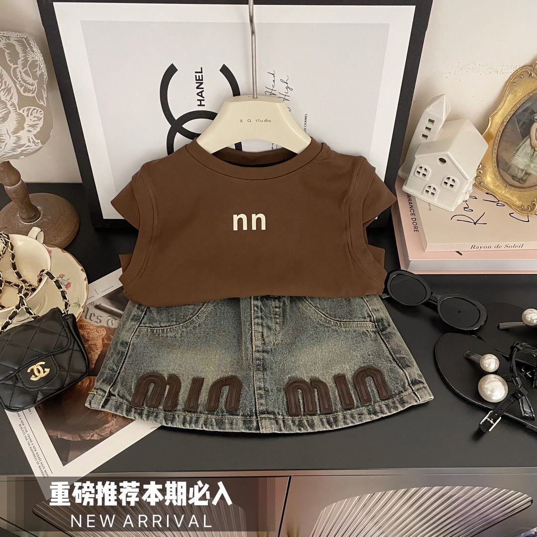 여자 여름 세트 2025 새로운 한국 스타일 서양식 티셔츠 짧은 소매 데님 스커트 투피스 캐주얼 올 매치 트렌디스토어 가기