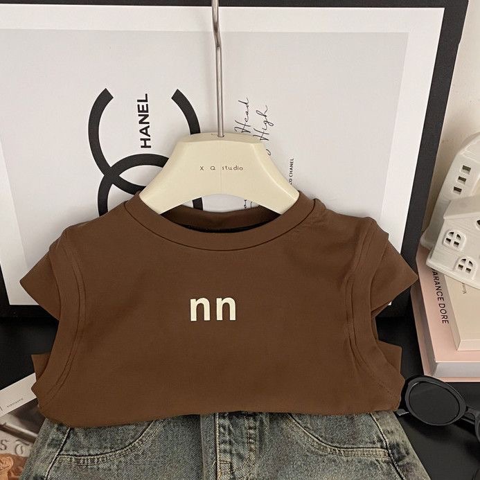 • 브라운 반팔 티셔츠