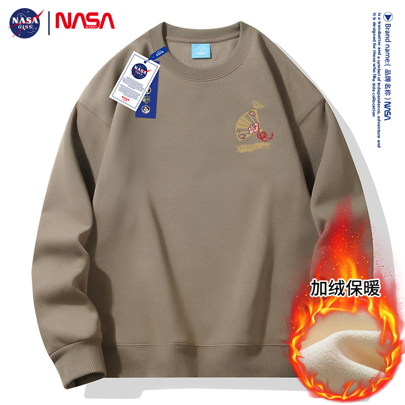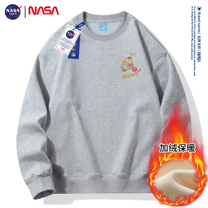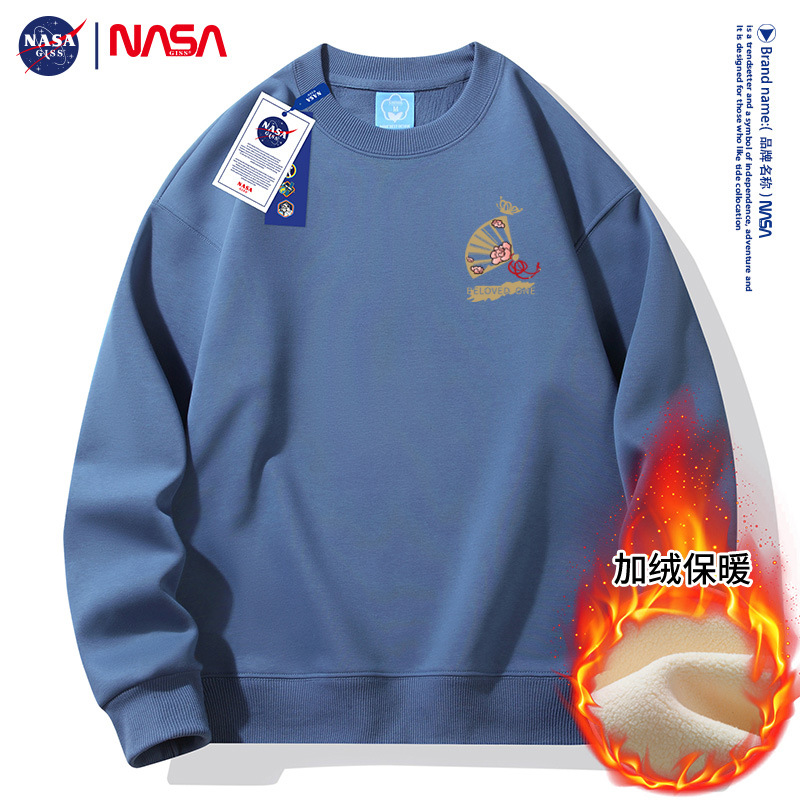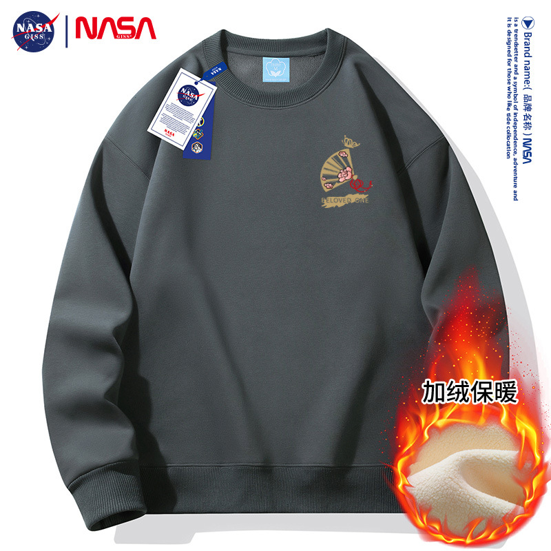 가을과 겨울 남자 2024 라운드 넥 느슨한 패셔너블 플러스 사이즈 땀 기모 젊은 남성과 고등학생을위한 두꺼운 긴 소매 땀스토어 가기