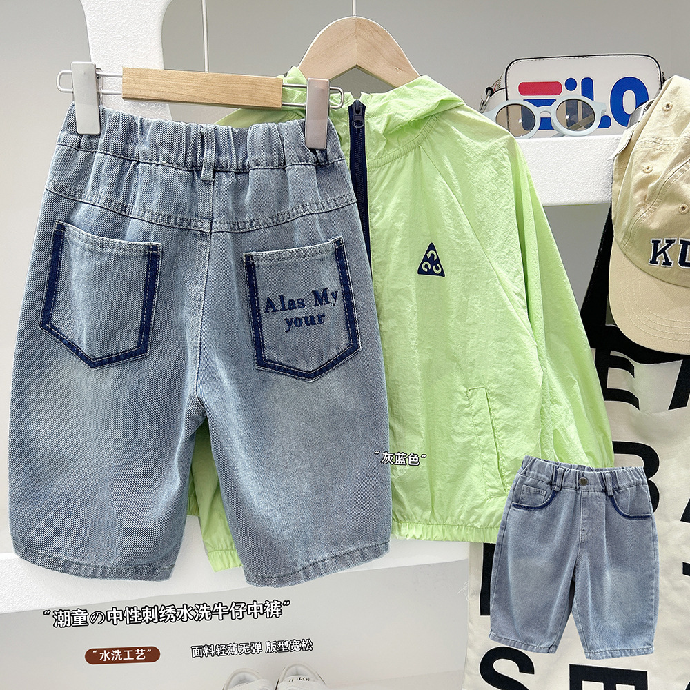 소년 반바지 여름 2025 새로운 아동복 소년 5 점 바지 느슨한 큰 어린이 바지 여름 어린이 청바지스토어 가기