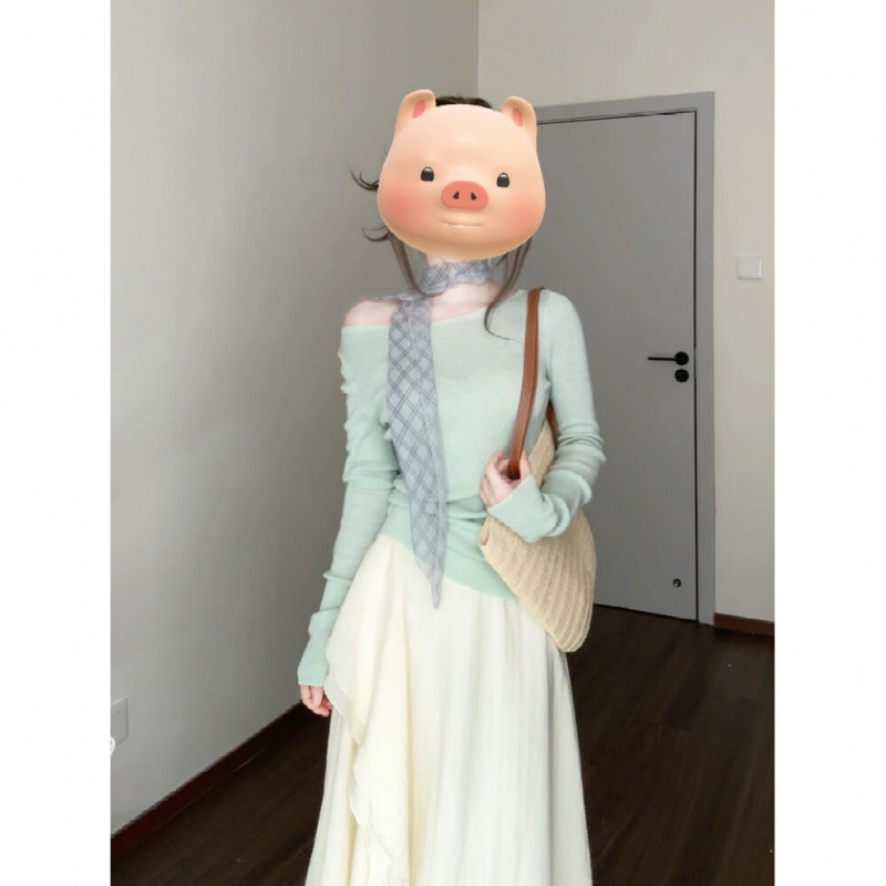 봄은 2025 년 초봄 여성 녹색 스웨터 불규칙한 스커트 투피스 세트 세트를 착용합니다.스토어 가기