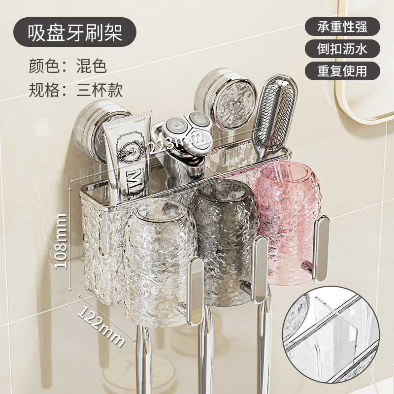 흡입 컵 칫솔 보관 랙 손잡이가있는 벽걸이 형 구멍이없는 홀링 새로운 화장실 치약 컵 선반스토어 가기