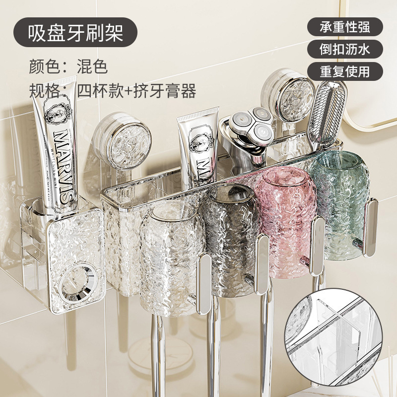 • [혼합색상 4컵] 칫솔꽂이 + 치약 압착기⭐손잡이 포함