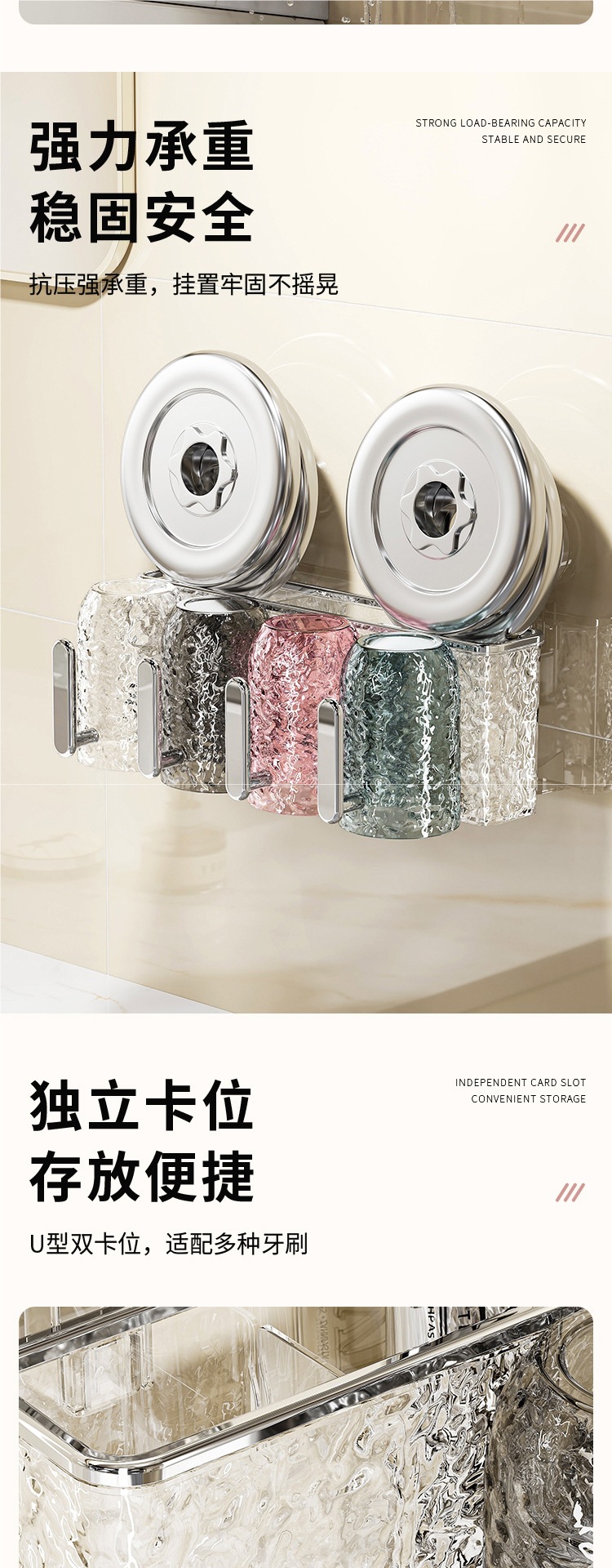 • [혼합색상 4컵] 칫솔꽂이⭐손잡이 포함