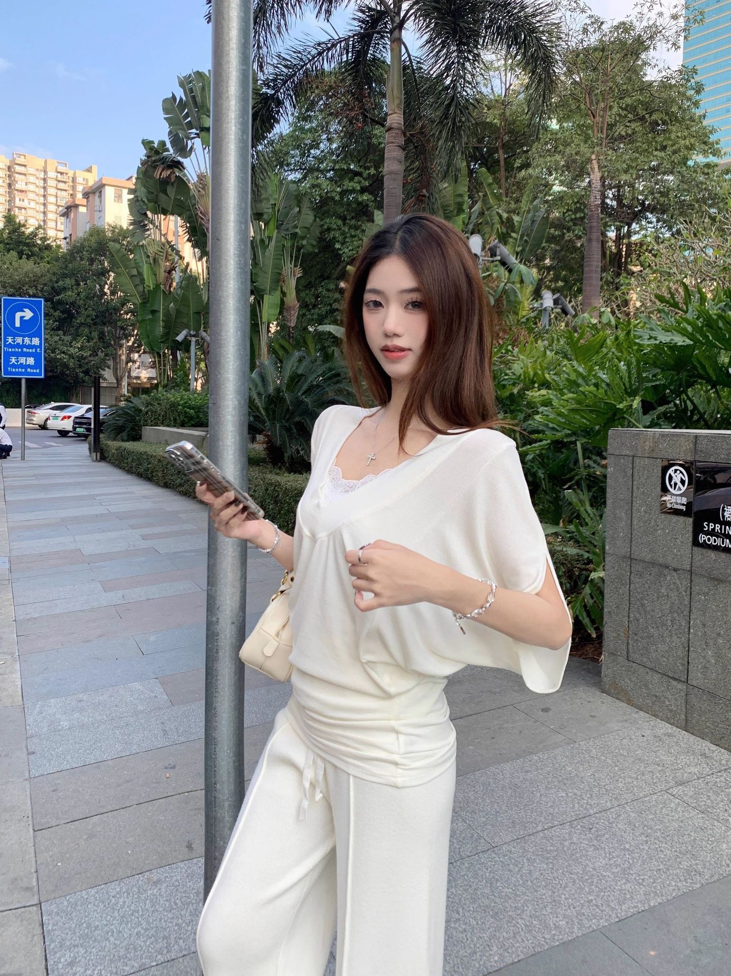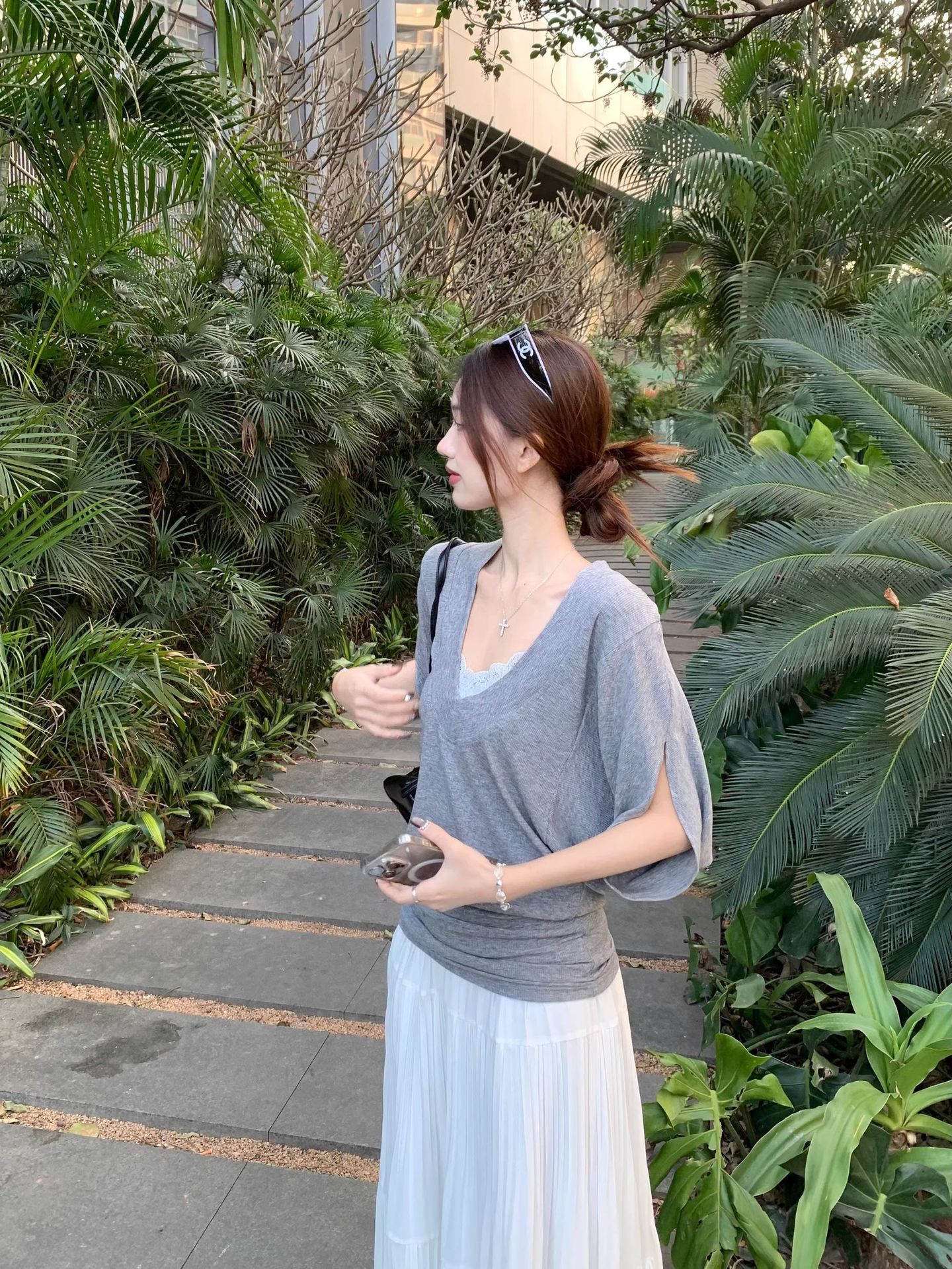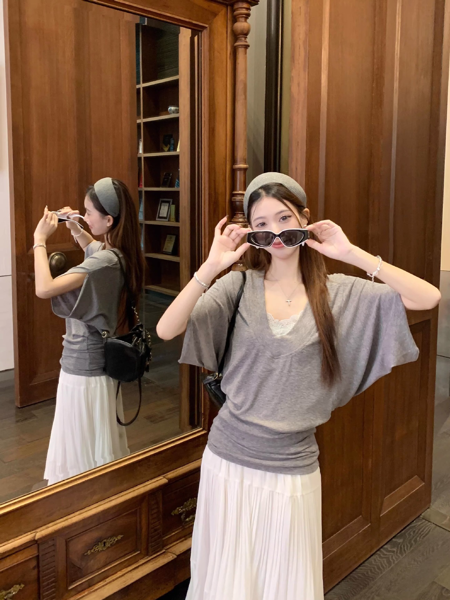 게으른 스타일 느슨한 슬리밍 V 넥 반팔 티셔츠 여성 여름 한국 스타일 스파이스 소녀 슬리밍 한국 스타일 캐주얼 디자인 티셔츠스토어 가기