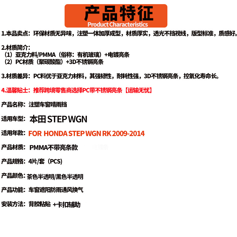 일본 Honda Buwei 창 비 방패 단계 wgn rk 2009-2014 창 바이저에 적용 가능