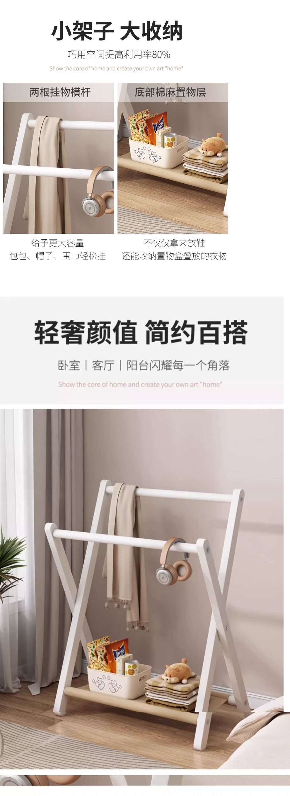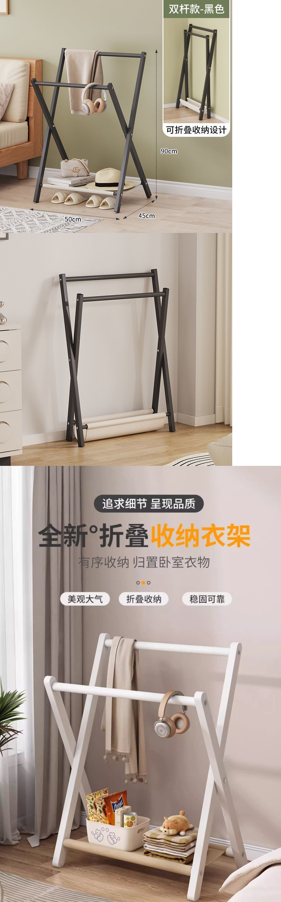 바닥 걸이 침실 접이식 보관 랙 의류 임시 배치 룸 접이식 임시 침대 코트 랙