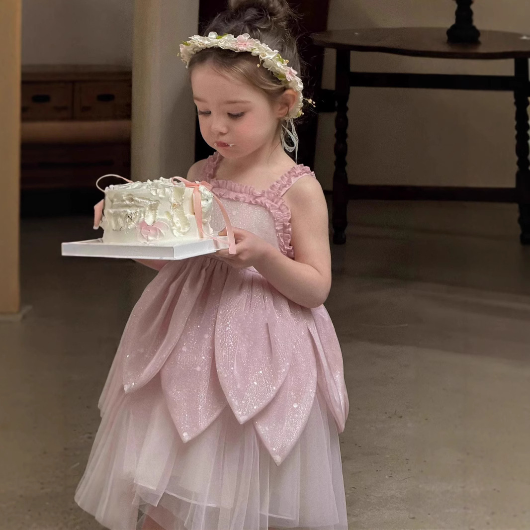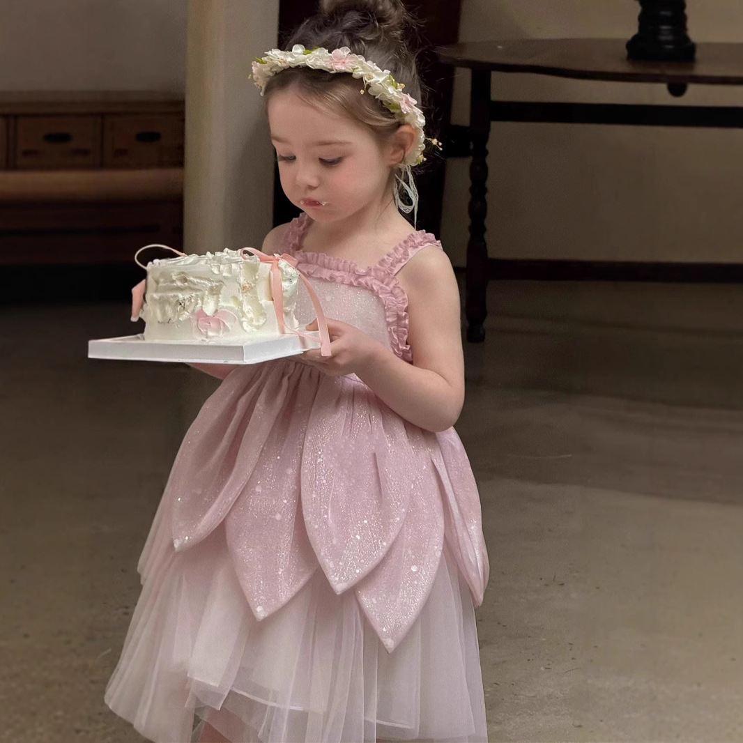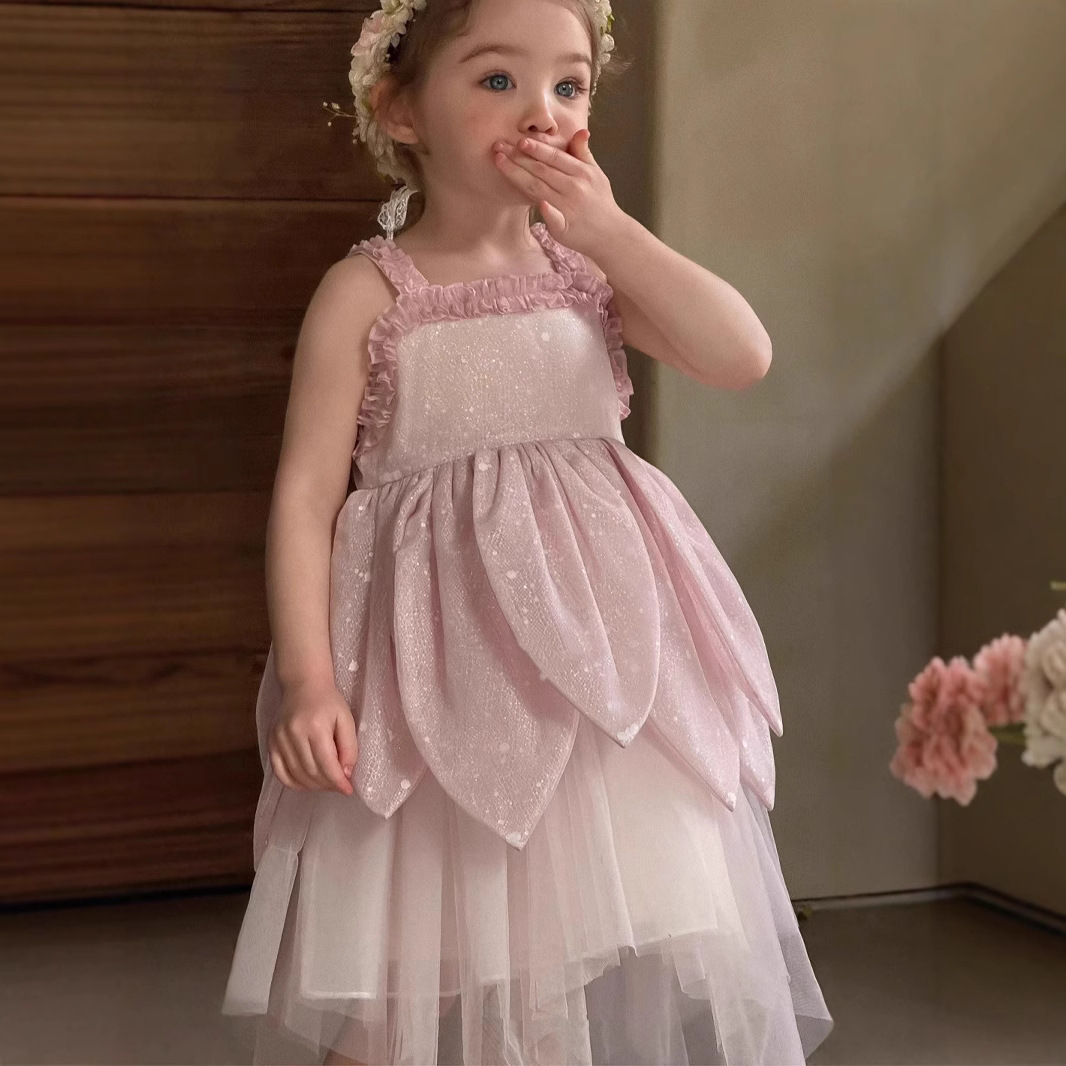 공주 드레스 소녀 드레스 꽃요정 한국 스타일 여름 드레스 새로운 여름 서스펜더 드레스 어린이와 아기를 위한 드레스