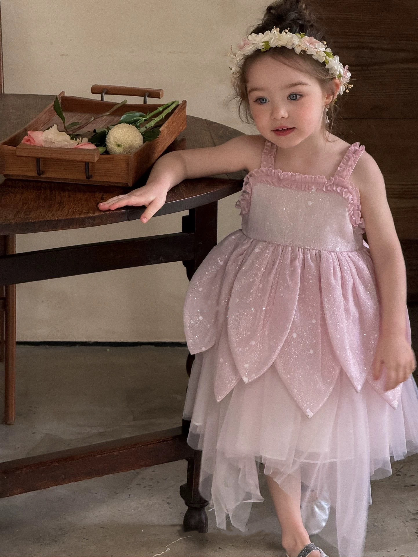 공주 드레스 소녀 드레스 꽃요정 한국 스타일 여름 드레스 새로운 여름 서스펜더 드레스 어린이와 아기를 위한 드레스스토어 가기