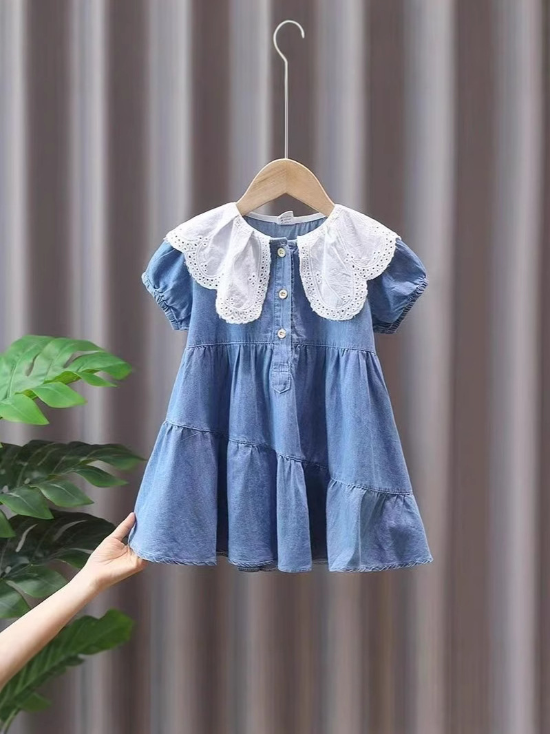 소녀의 아기 인형 칼라 원피스 여름 원피스 새로운 아기 소녀의 서양식 생일 원피스 어린이 아기의 귀여운 주름 치마스토어 가기