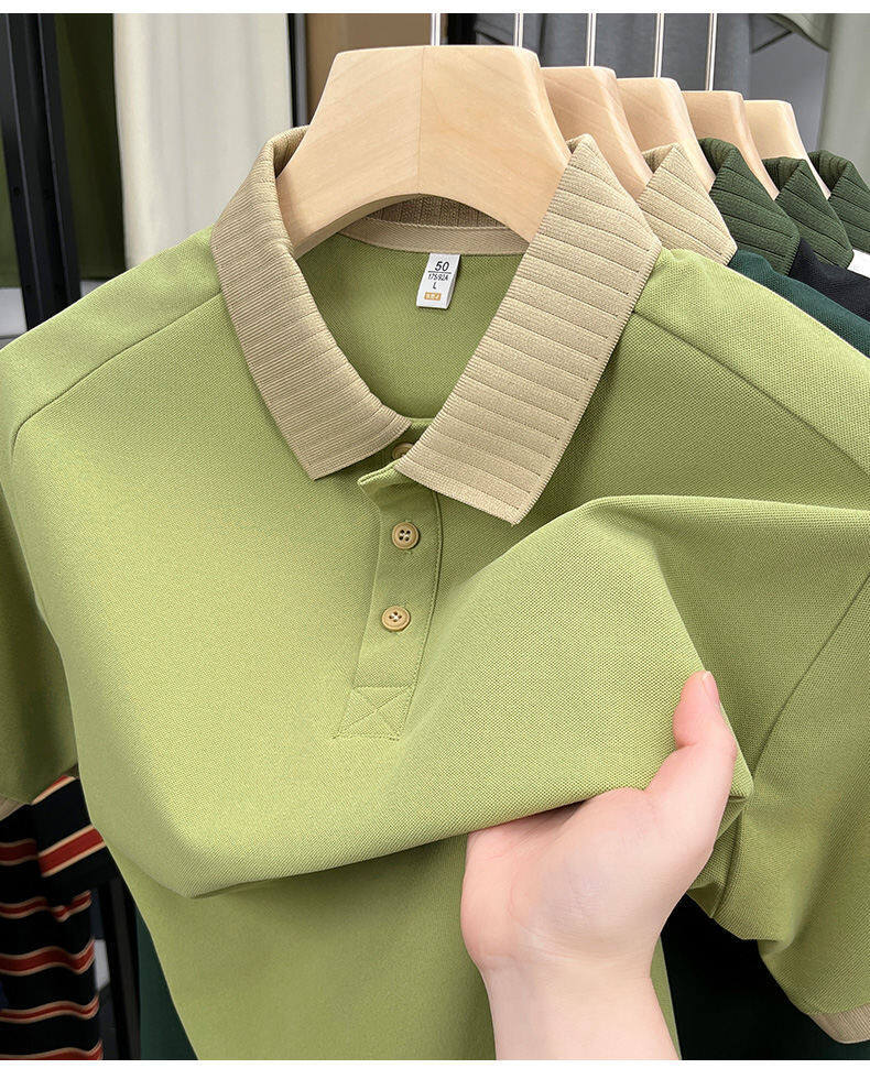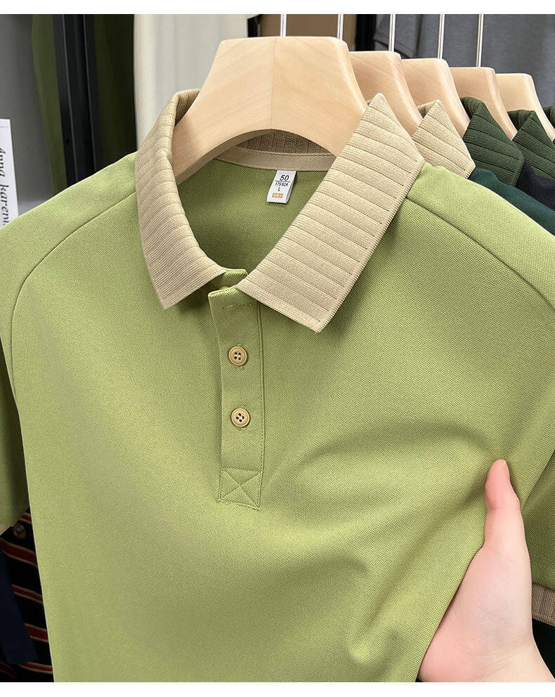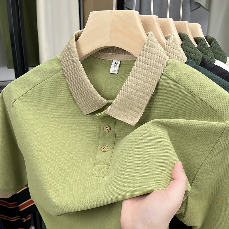 2025 년 여름 새 남자 반소매 티셔츠 야외 스포츠 빠른 건조 아이스 실크 남자 캐주얼 반팔 티셔츠 폴로 셔츠