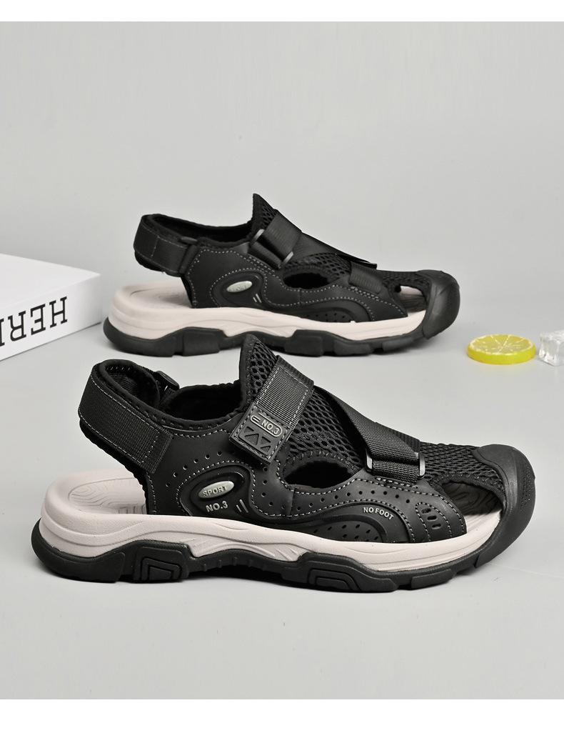 비치 슈즈 남자 2025 년 여름 뉴 소프트 솔 야외 바오 터우 샌들 남자 슬립 온 경량 남성화 대외 무역 46 야드스토어 가기