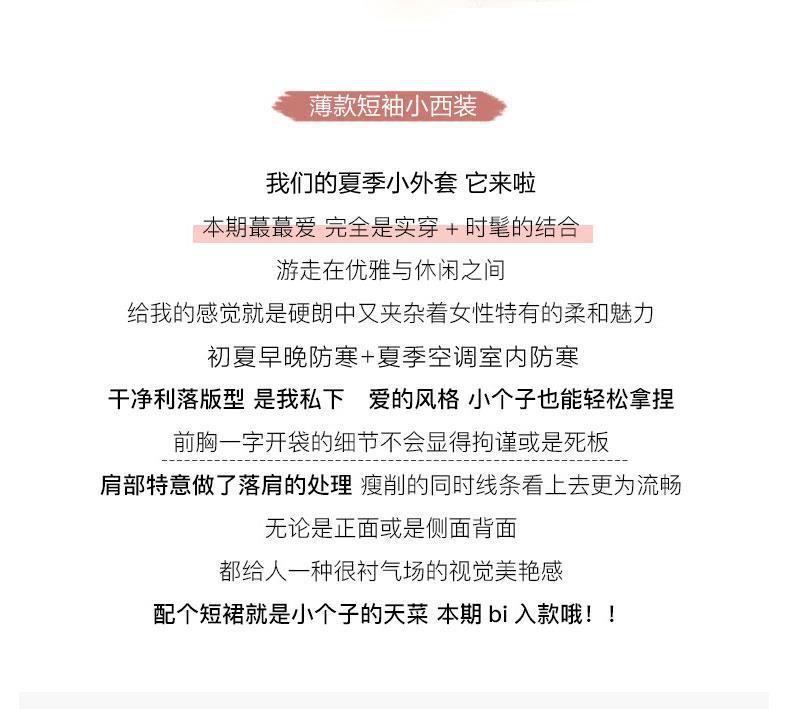여름 얇은 세븐 포인트 슬리브 하이 엔드 센스 작은 세트 재킷 여성 2025 봄 새로운 캐주얼 작은 세트 여성 탑스토어 가기