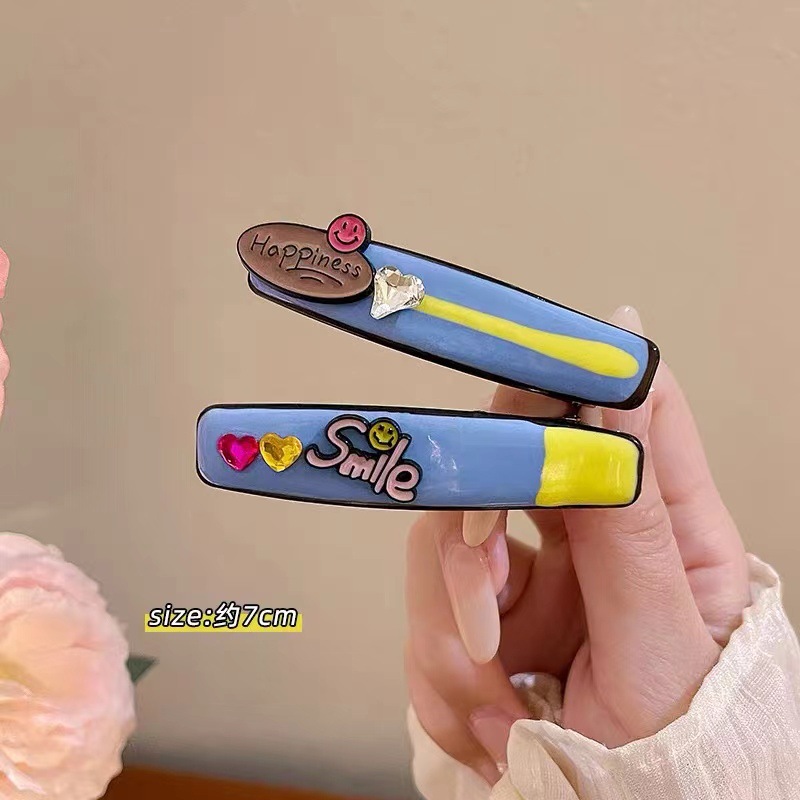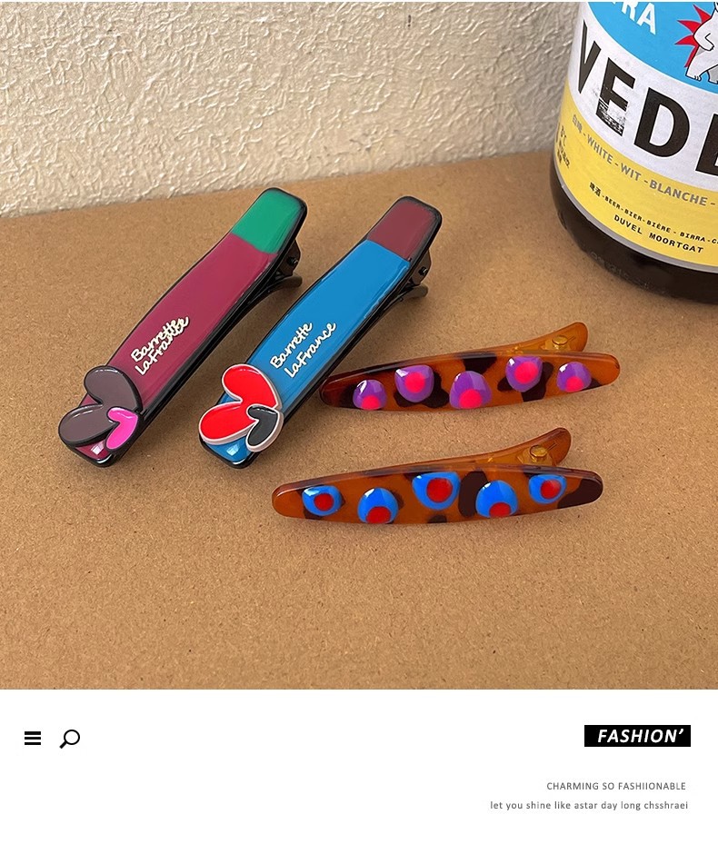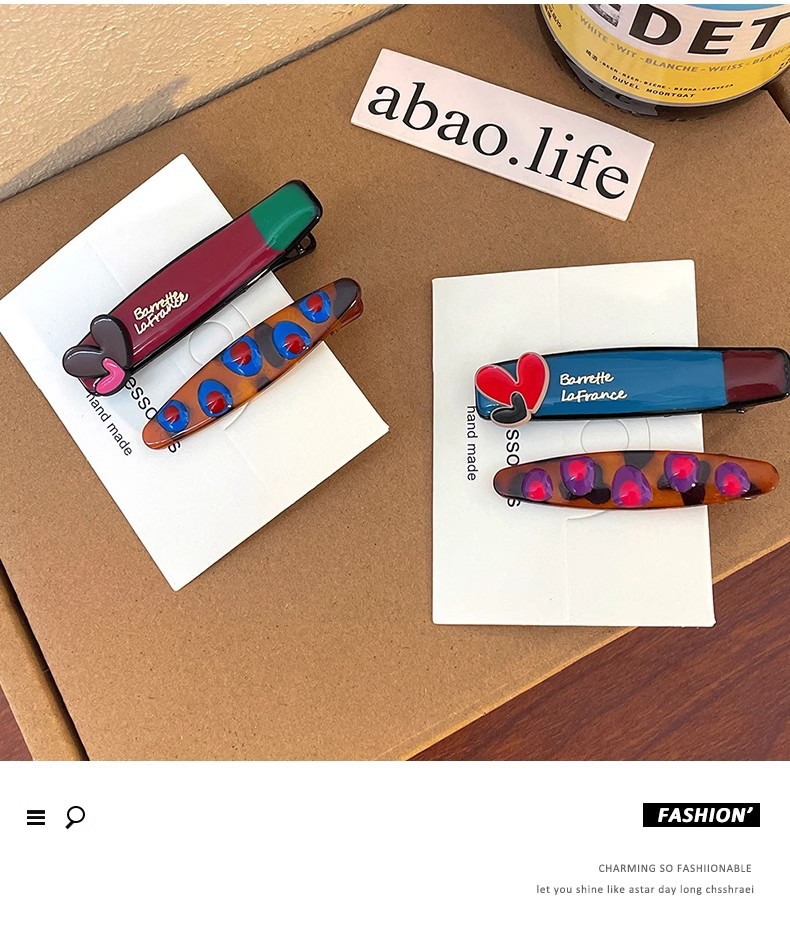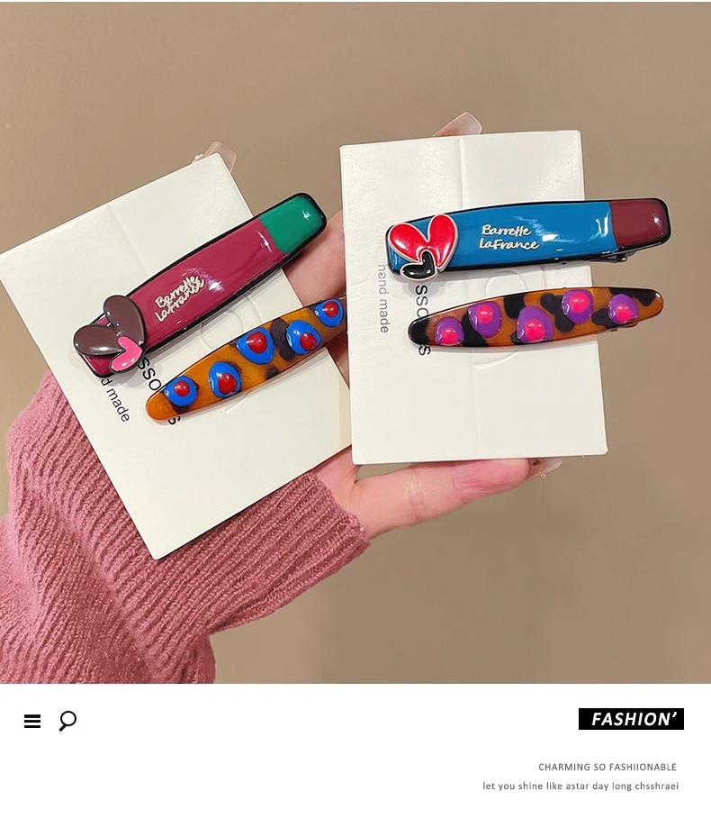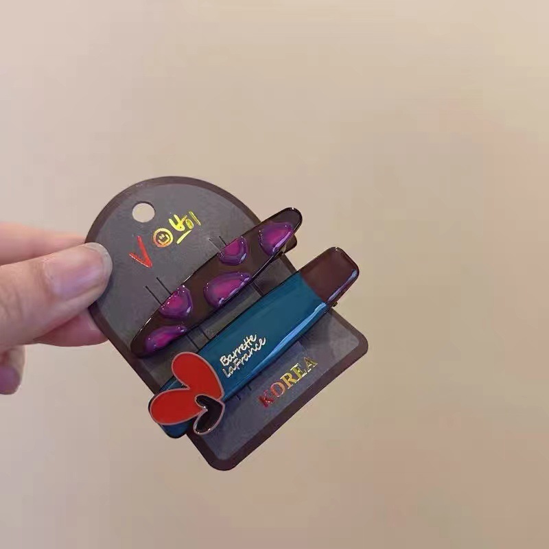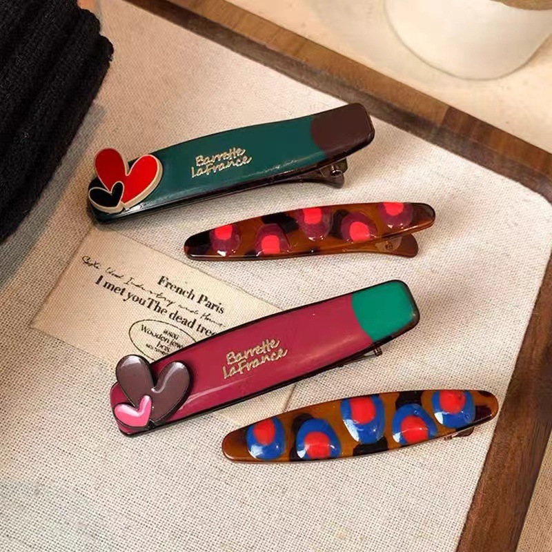 한국 동대문 오일 드롭 덕빌 클립 사이드 클립 여성용 깨진 헤어핀 컬러 사랑 AB 버전 헤어핀 헤어 액세서리