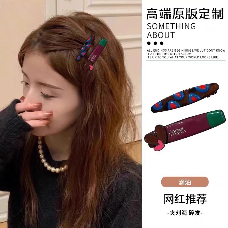 한국 동대문 오일 드롭 덕빌 클립 사이드 클립 여성용 깨진 헤어핀 컬러 사랑 AB 버전 헤어핀 헤어 액세서리스토어 가기