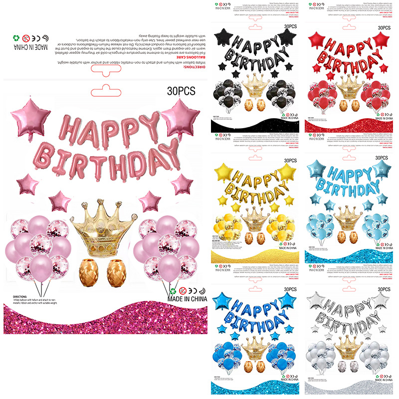 국경 생일 축하 편지 크라운 알루미늄 필름 조합 풍선 패키지 생일 파티 배경 장식 배열스토어 가기
