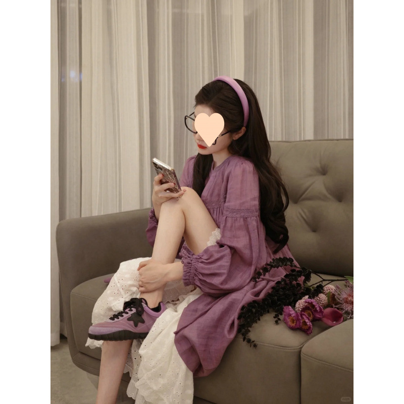 포도 보라색 매력 순수한 우아한 고급 스티칭 원피스 스타일 신선한 틈새 느슨한 슬리밍 휴가 원피스스토어 가기