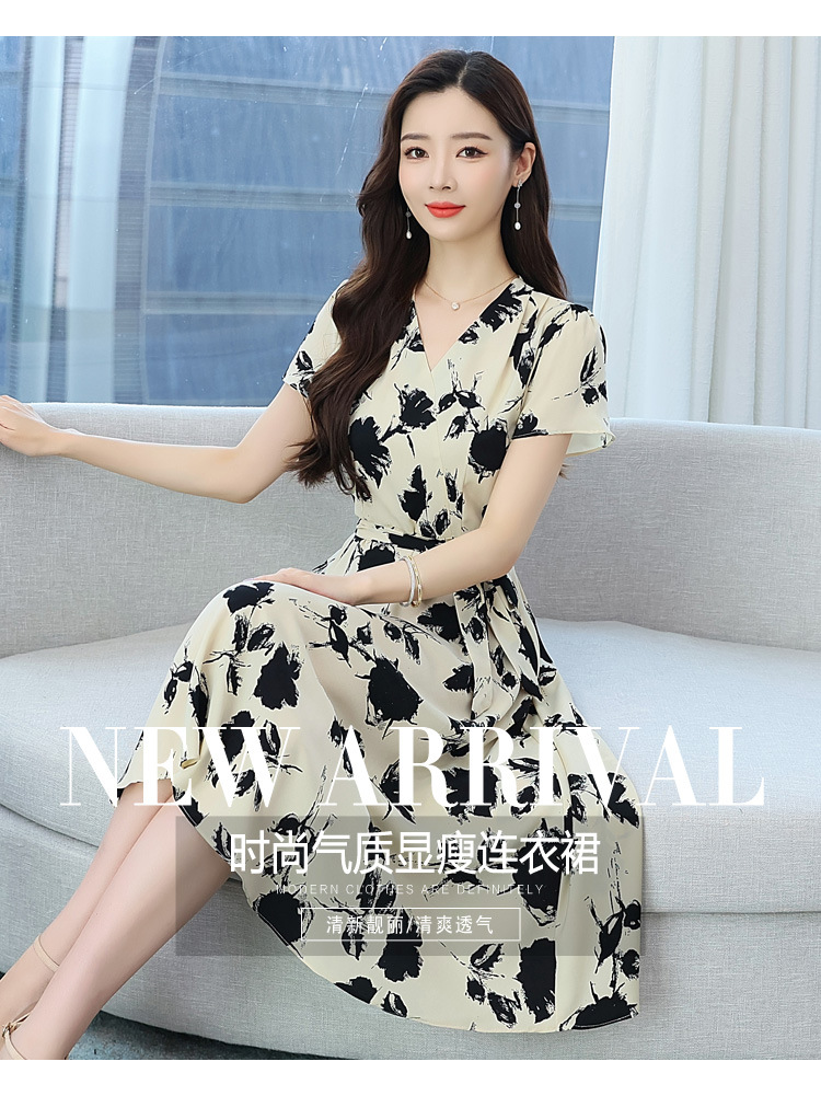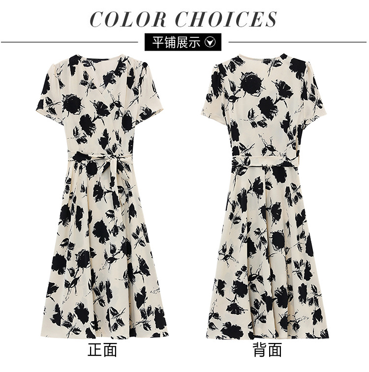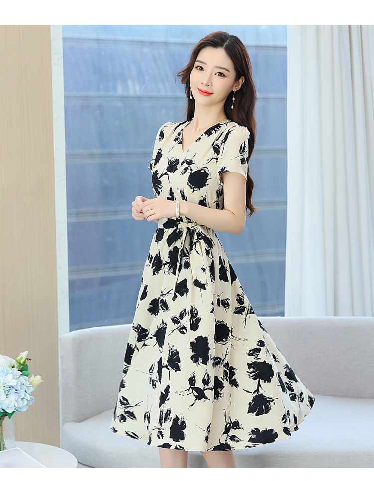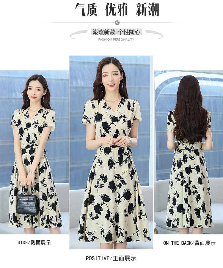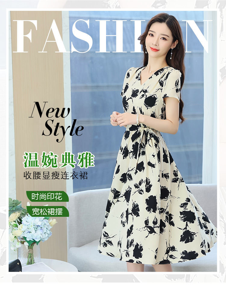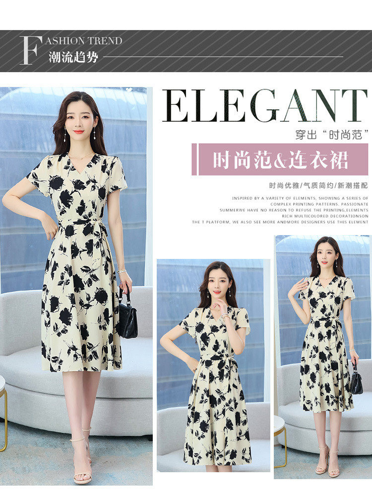 가벼운 성숙한 스타일 스커트 새로운 여름 원피스 여성 레트로 우아한 중간 길이 웨이스트 슬림 핏 반팔 인쇄 원피스스토어 가기
