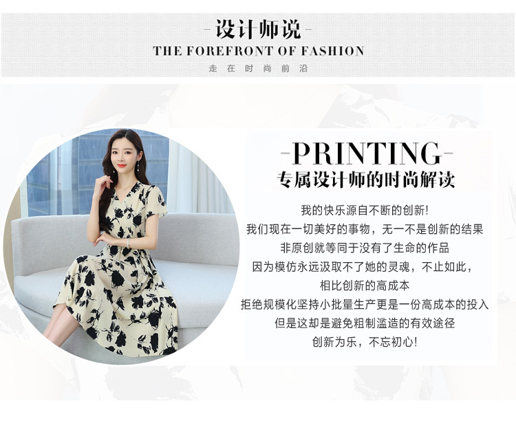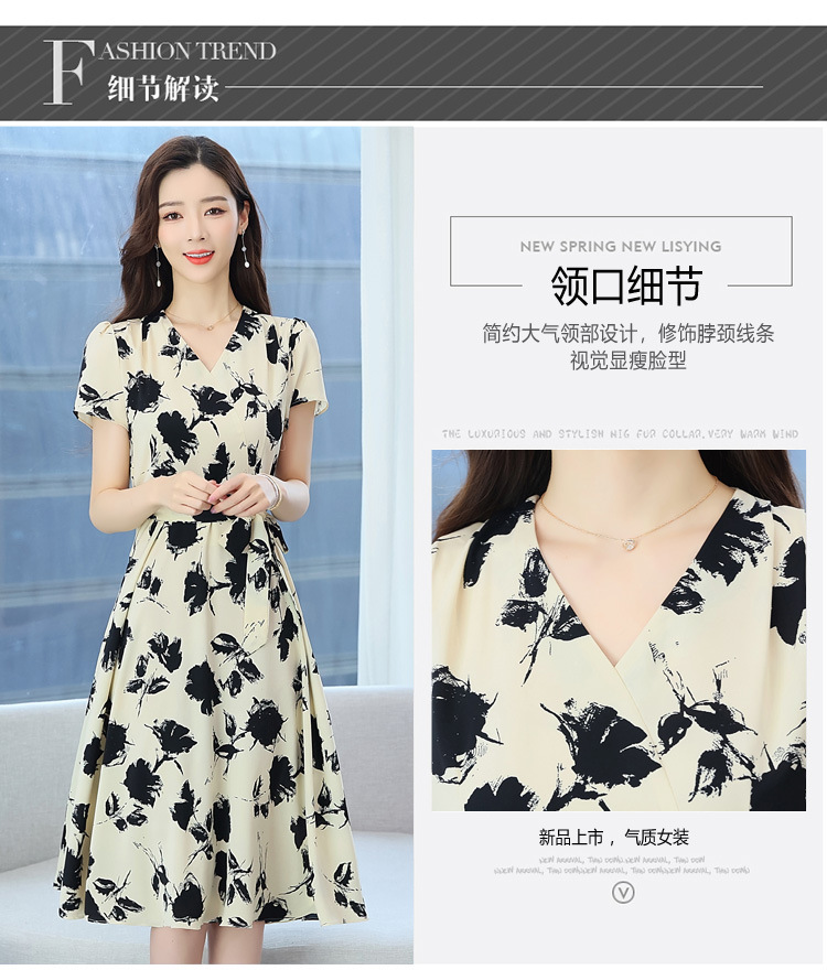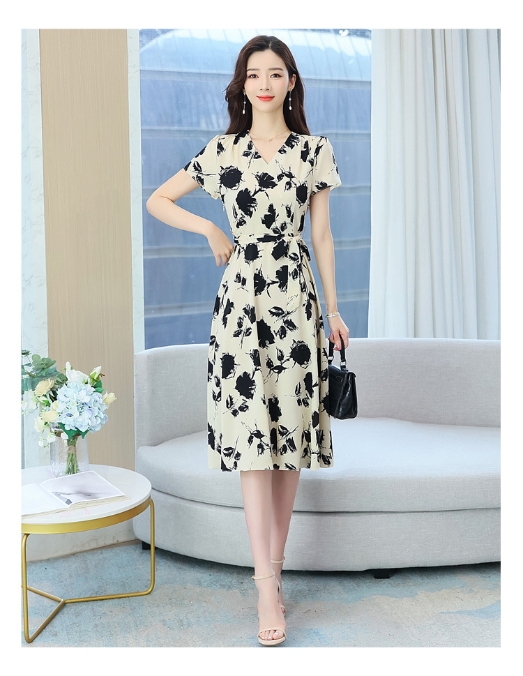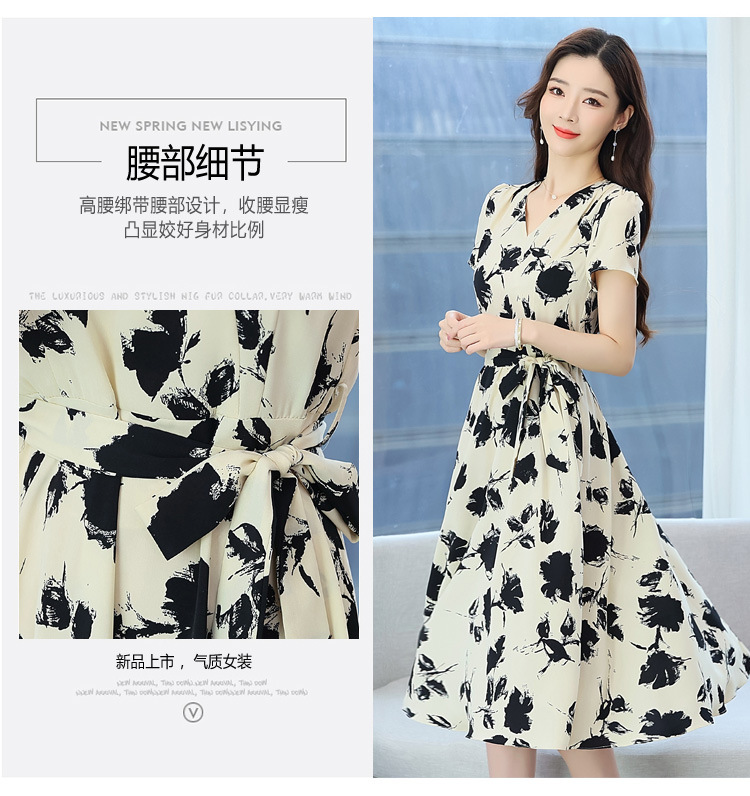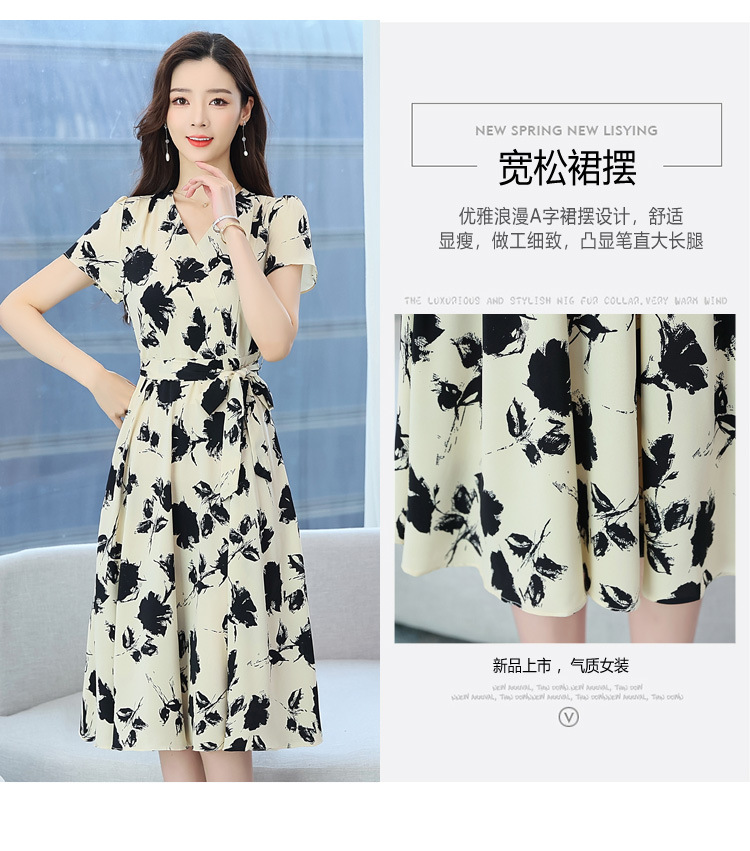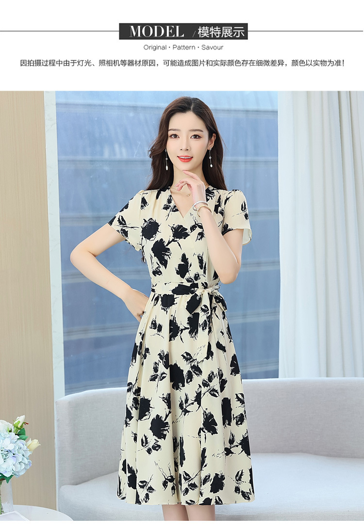 가벼운 성숙한 스타일 스커트 새로운 여름 원피스 여성 레트로 우아한 중간 길이 웨이스트 슬림 핏 반팔 인쇄 원피스스토어 가기