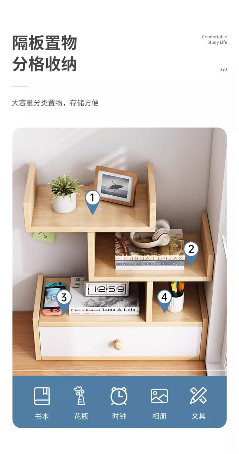 책꽂이 데스크톱 책상 보관 랙 학생 가정용 테이블 작은 책장 침실 사무실 다층 간단한 선반스토어 가기
