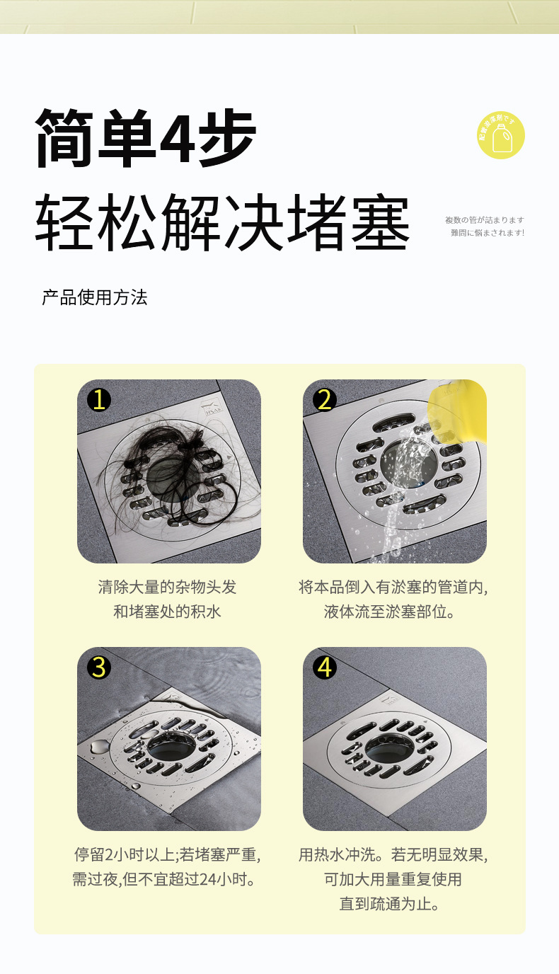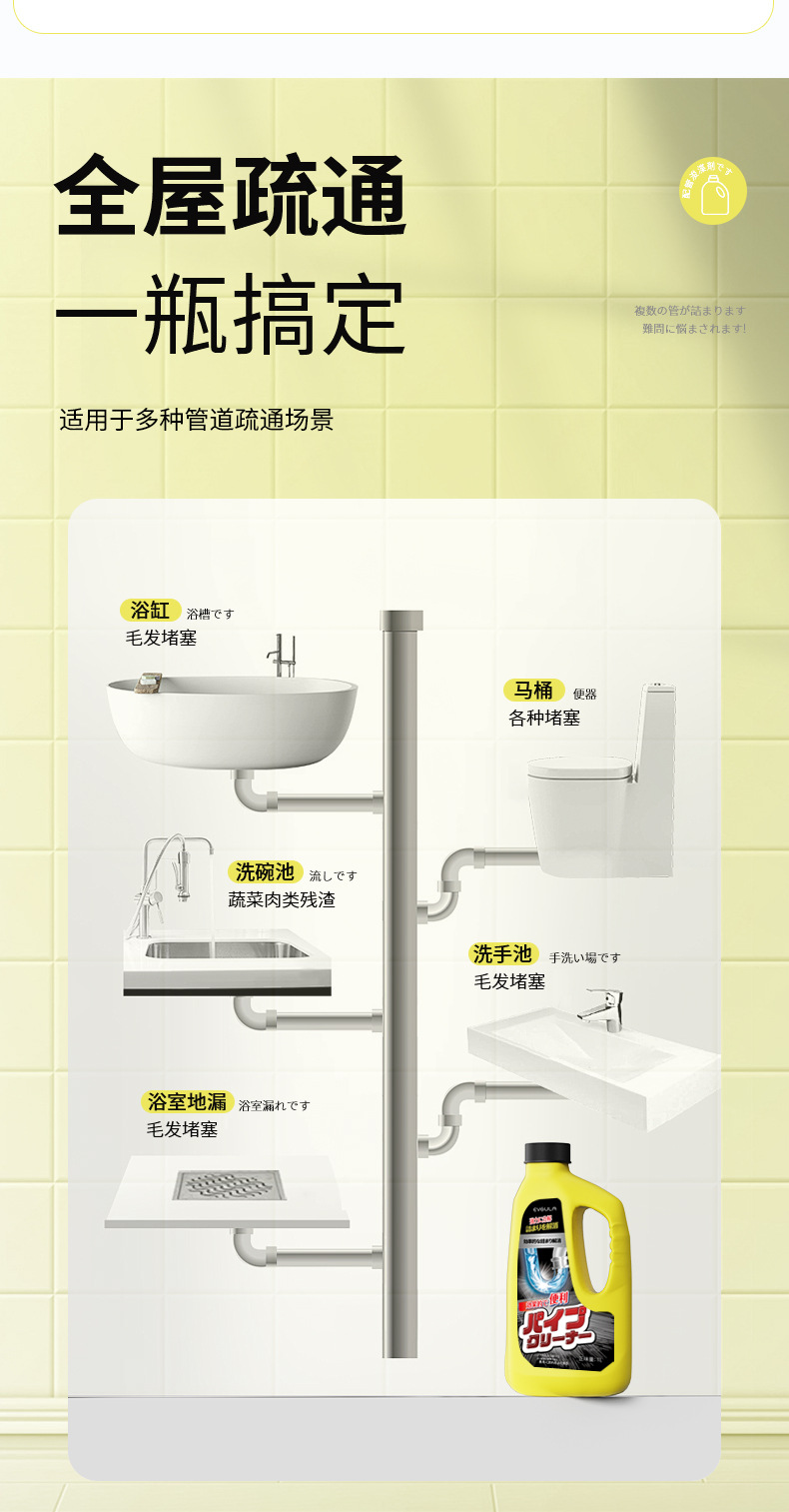 파이프라인 준설제 강한 용해제 액체 통해 부엌 하수도 기름 유물 화장실 화장실 막힘 스페셜스토어 가기