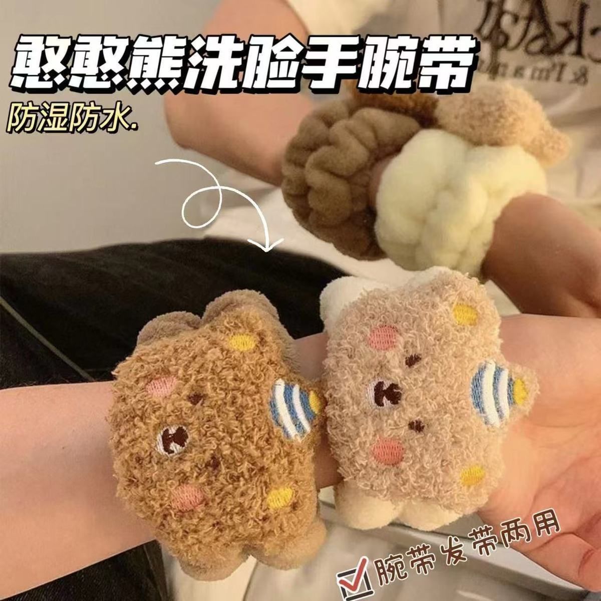 방수 헤어 벨트 페이스 워시 핸드 링 벨트 곰 습기 방지 손목 벨트 귀여운 세척 소매 먼지 방지 흡수성 아티팩트스토어 가기