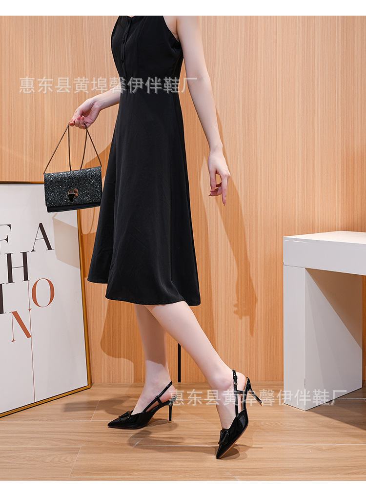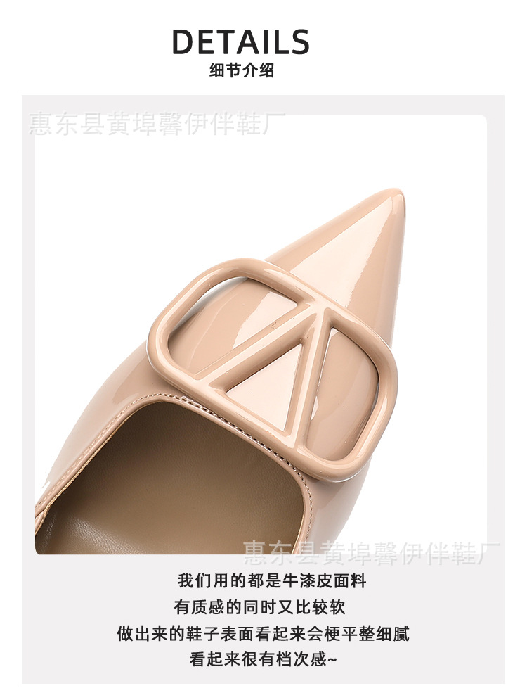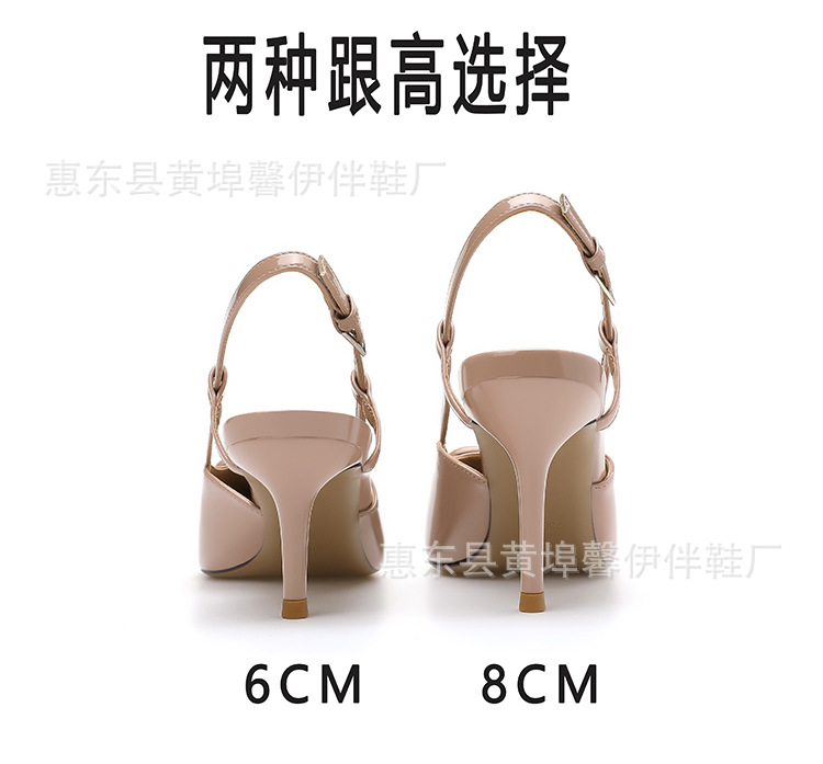 프랑스 뾰족한 V-버클 스틸레토 힐 하이힐 슈즈 여성용 2025 뉴 누드 컬러 벨트 리어 빈 발가락 샌들