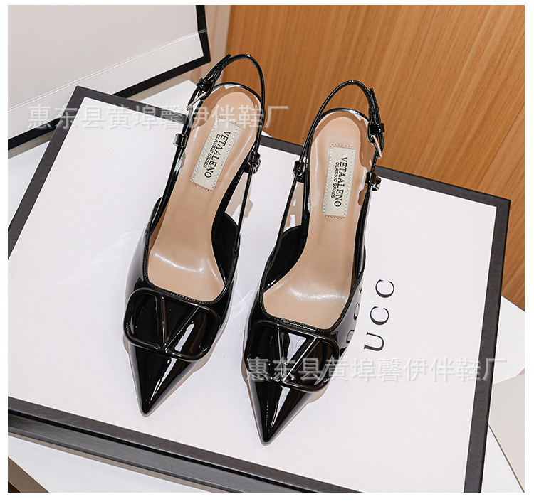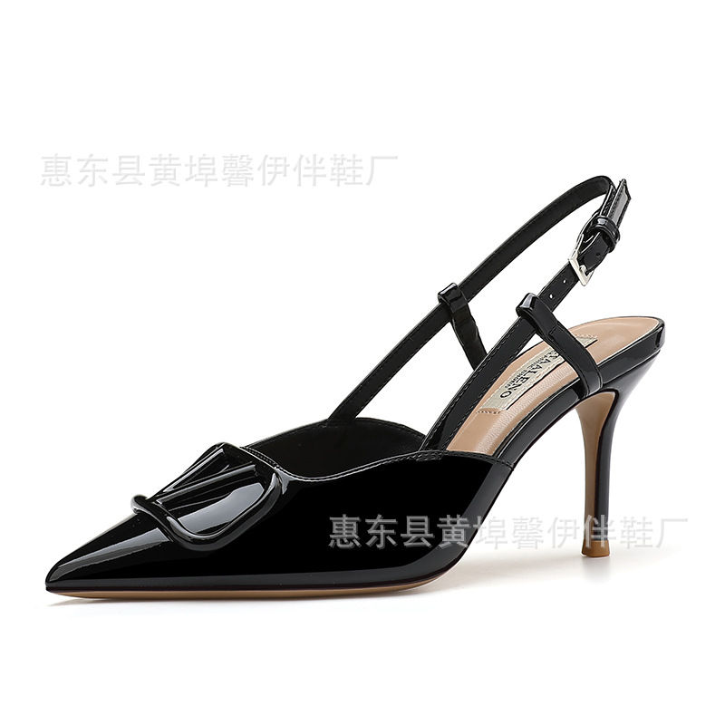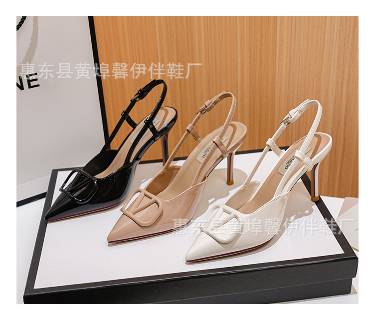 프랑스 뾰족한 V-버클 스틸레토 힐 하이힐 슈즈 여성용 2025 뉴 누드 컬러 벨트 리어 빈 발가락 샌들스토어 가기