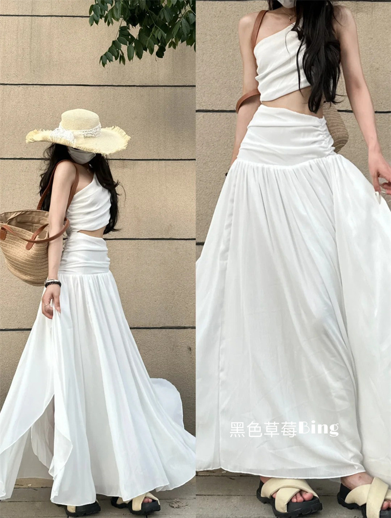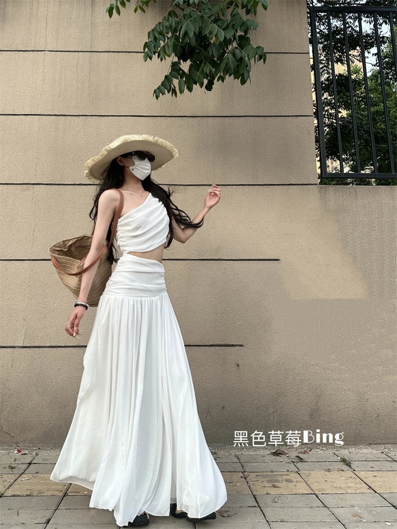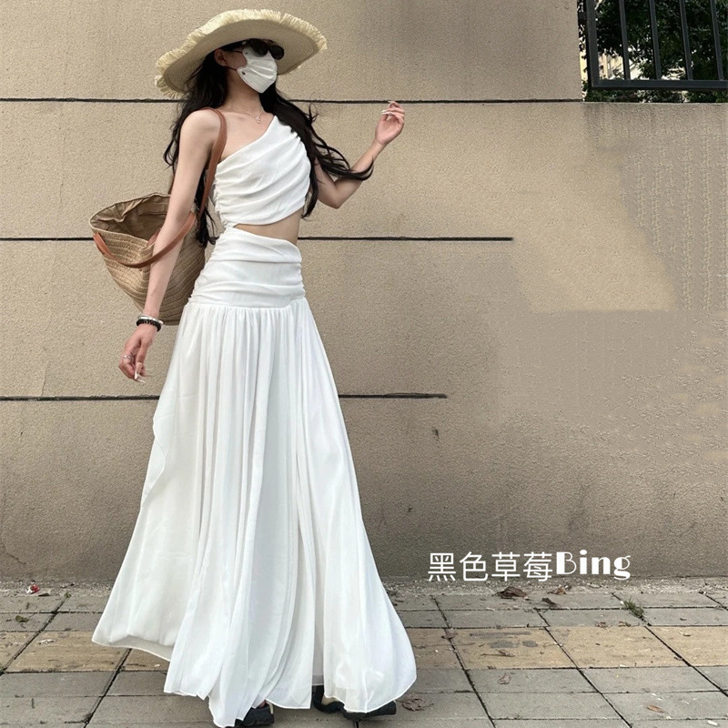 프랑스 스타일 슈퍼 요정 아름다운 할로우 어깨 원피스 여름 하이 엔드 우아한 해변 휴일 오픈 허리 분할 긴 원피스