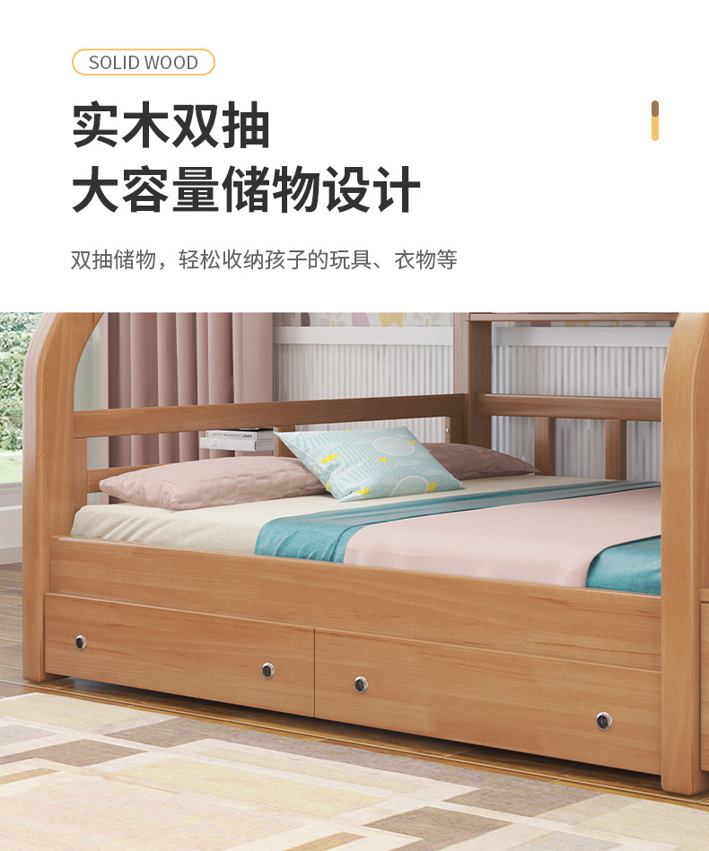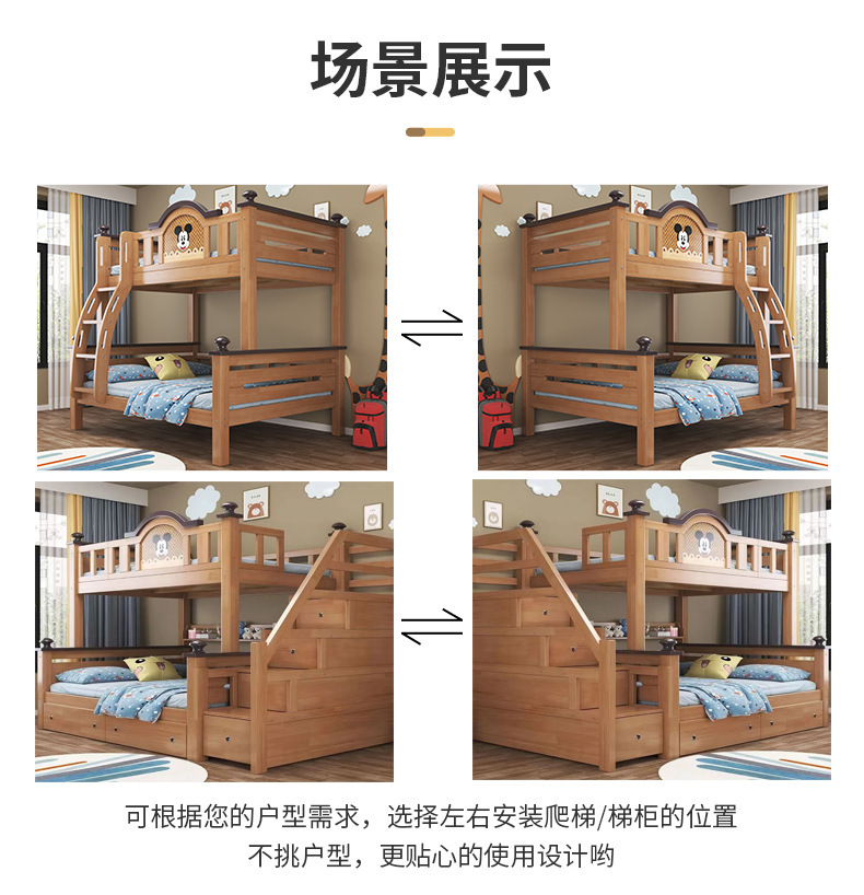 풀 솔리드 우드 벙크 침대 높고 낮은 침대 어머니 침대 통나무 어린이 침대 더블 데크 십대 다기능 작은 아파트 더블 침대