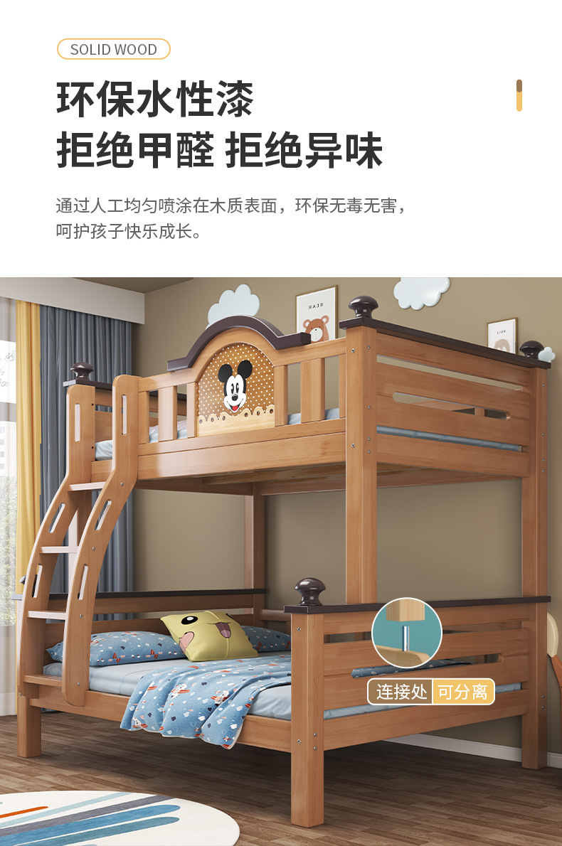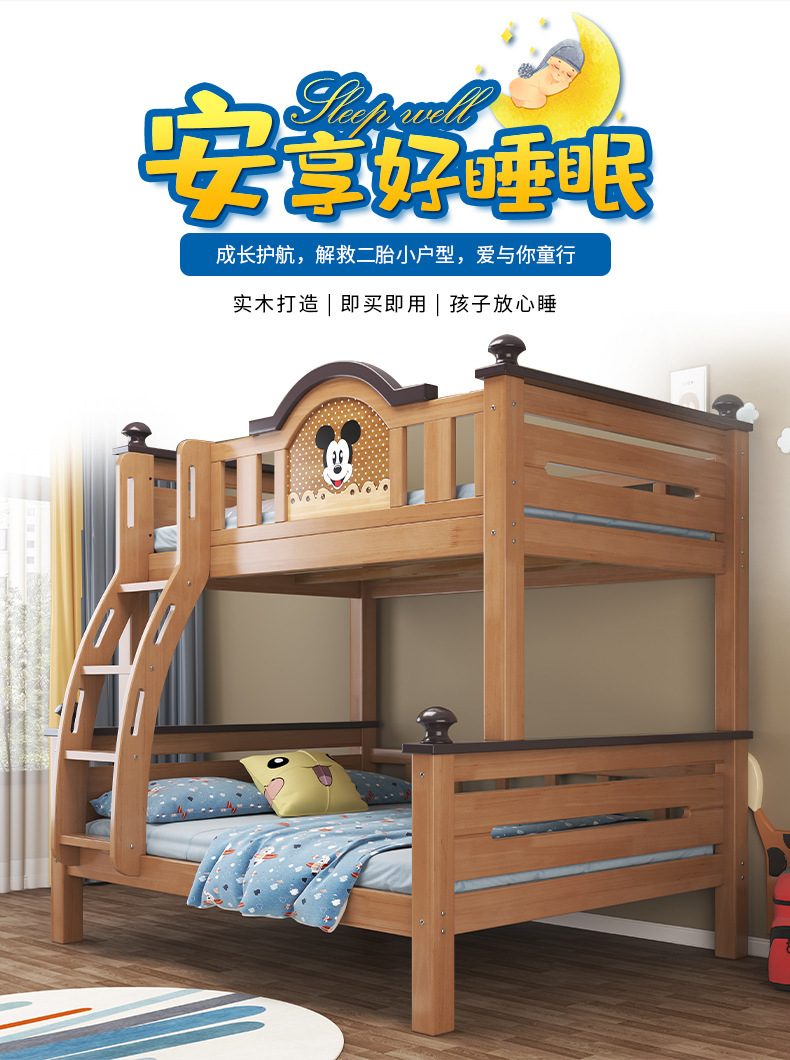 풀 솔리드 우드 벙크 침대 높고 낮은 침대 어머니 침대 통나무 어린이 침대 더블 데크 십대 다기능 작은 아파트 더블 침대스토어 가기
