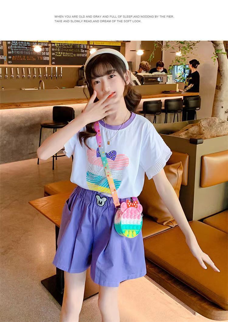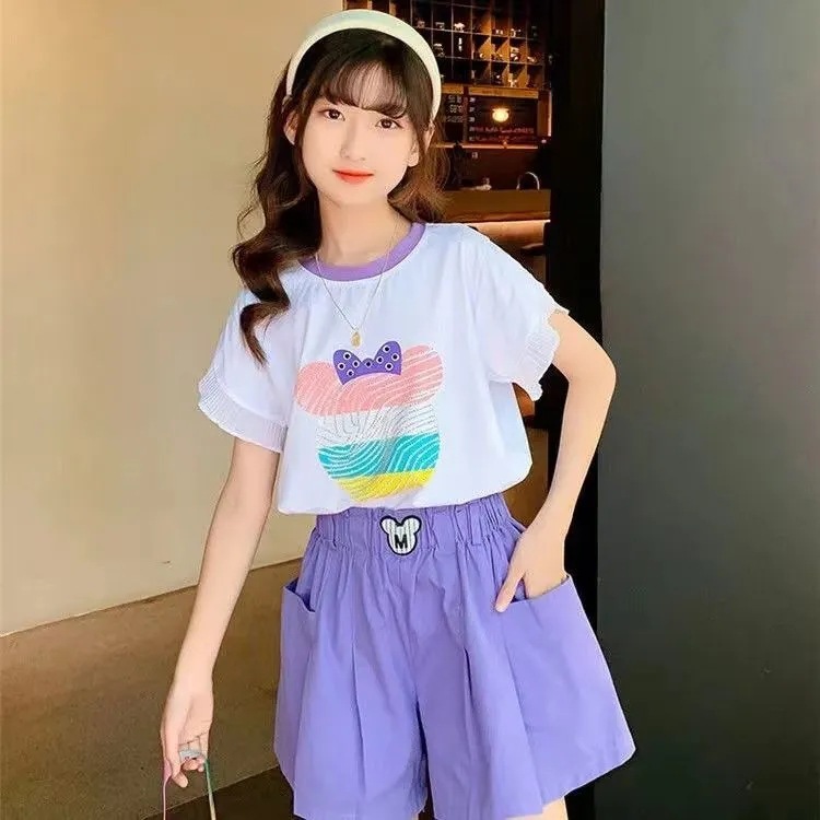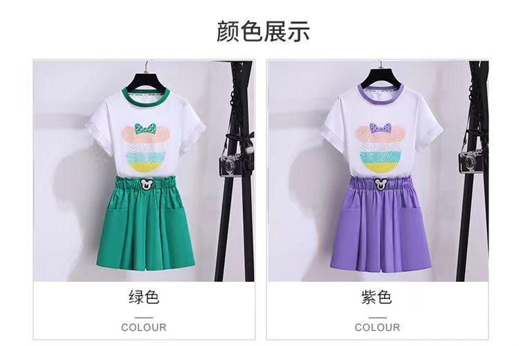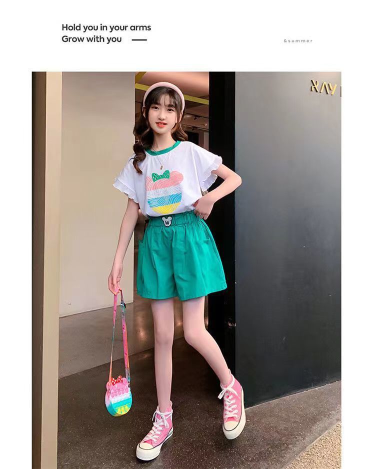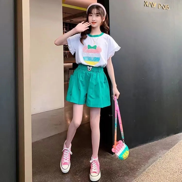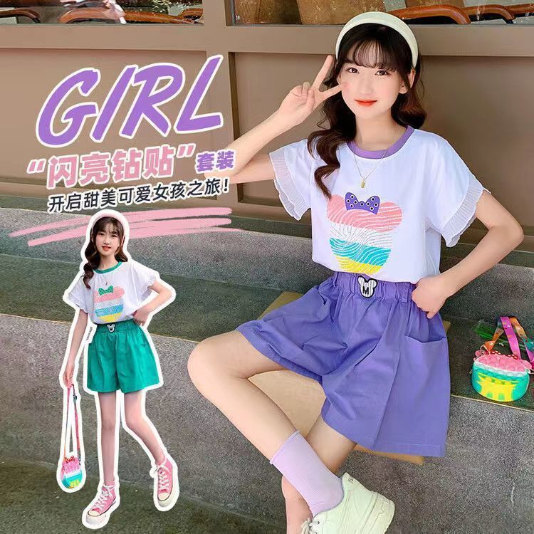 女童夏季套装2025新款洋气时髦儿童短袖短裤夏装中大童烫钻两件套