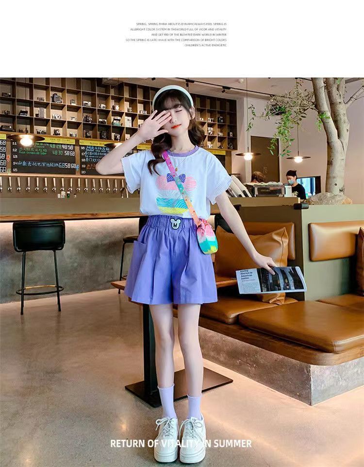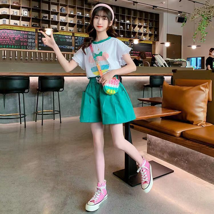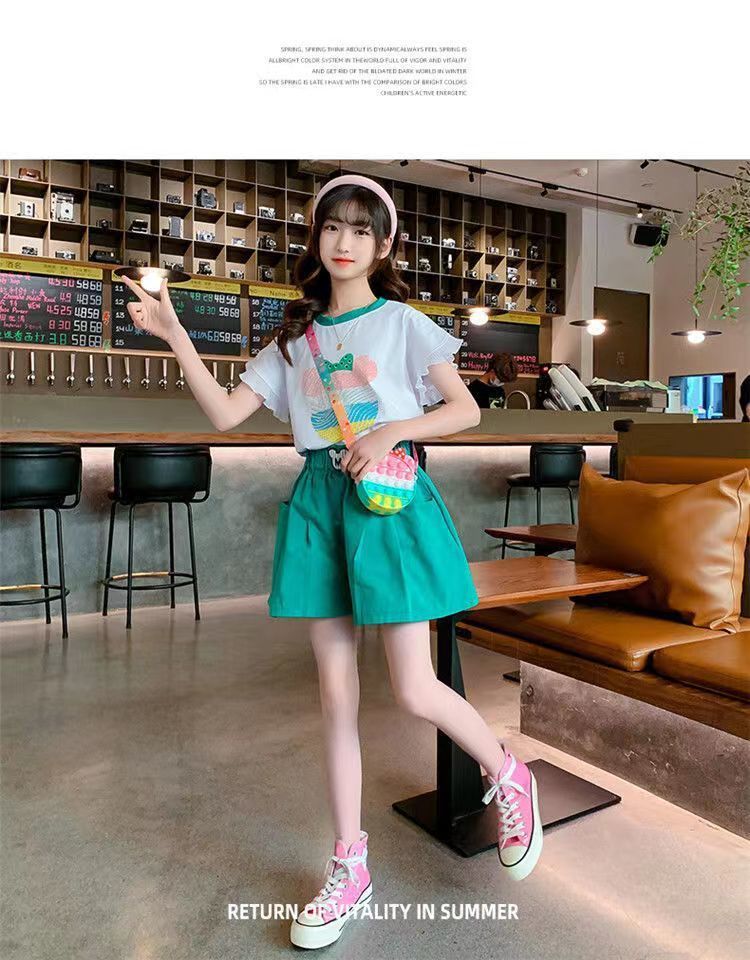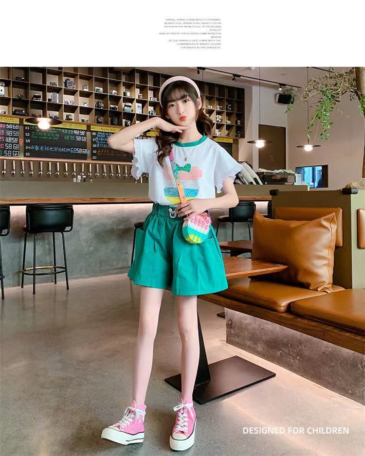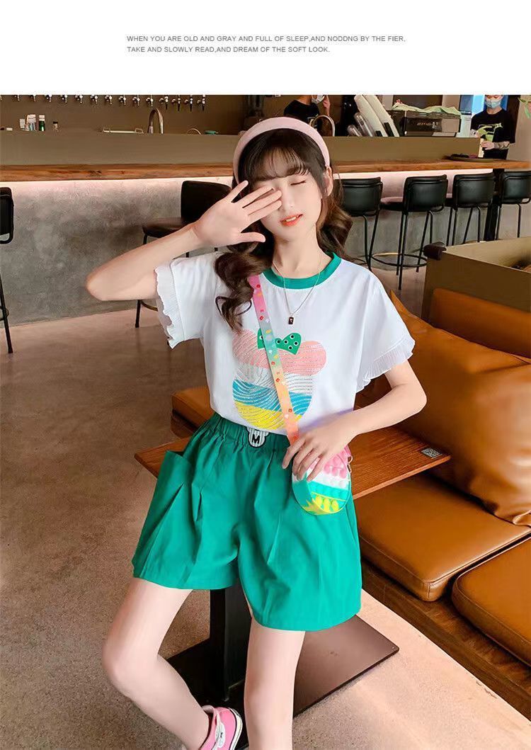 女童夏季套装2025新款洋气时髦儿童短袖短裤夏装中大童烫钻两件套스토어 가기