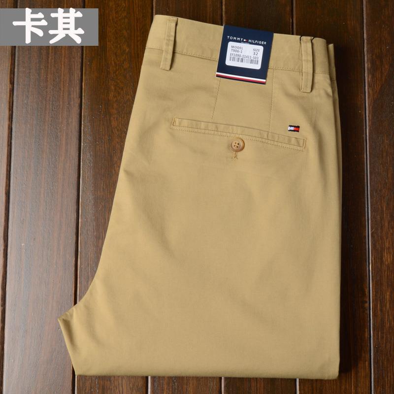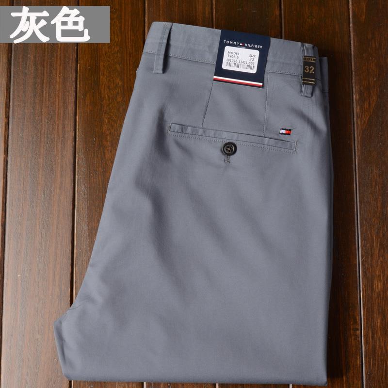 유럽 역 빅 브랜드 토미 캐주얼 바지 남자 봄과 여름 사계절 얇은 비즈니스 스트레이트 느슨한 남자 바지