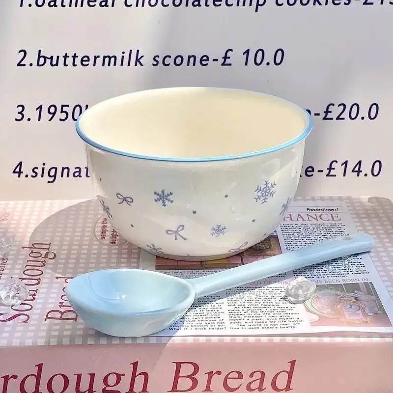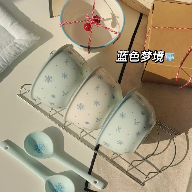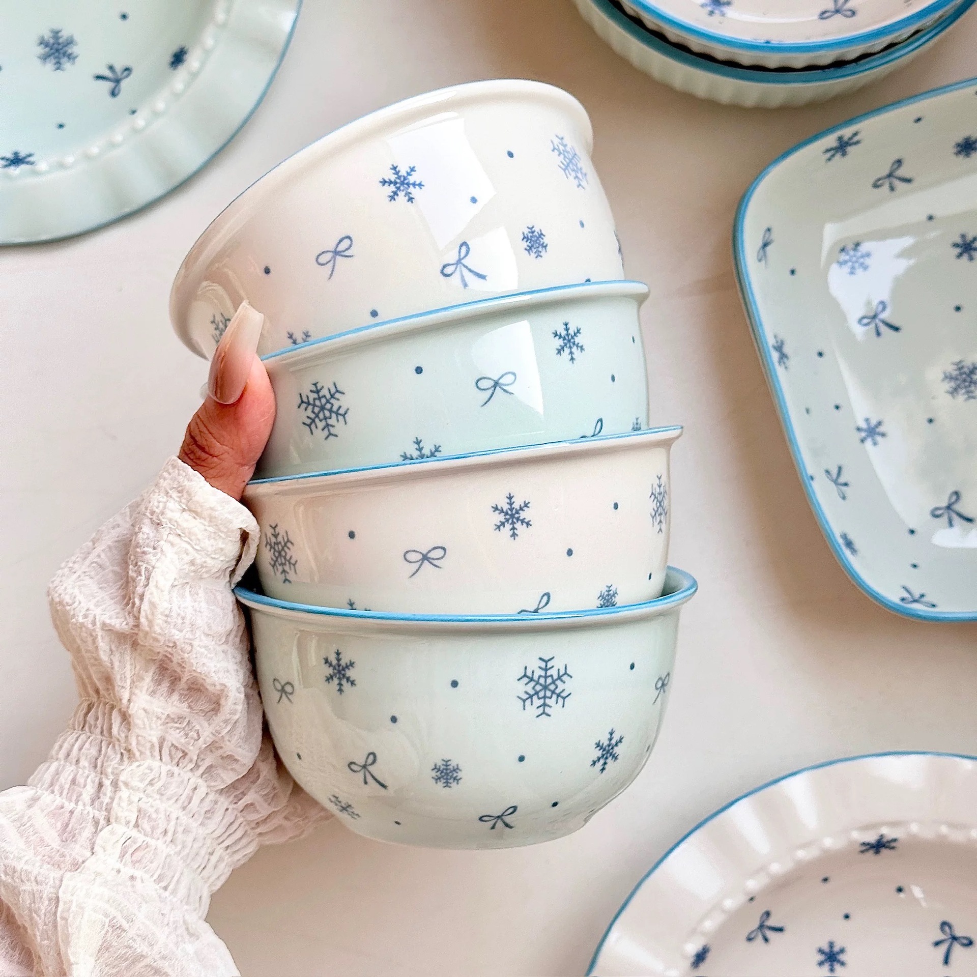 [첫눈] 새로운 고온 유약 컬러 세라믹 식기 세트 스타일 밀크 블루 간단한 가정용 그릇스토어 가기